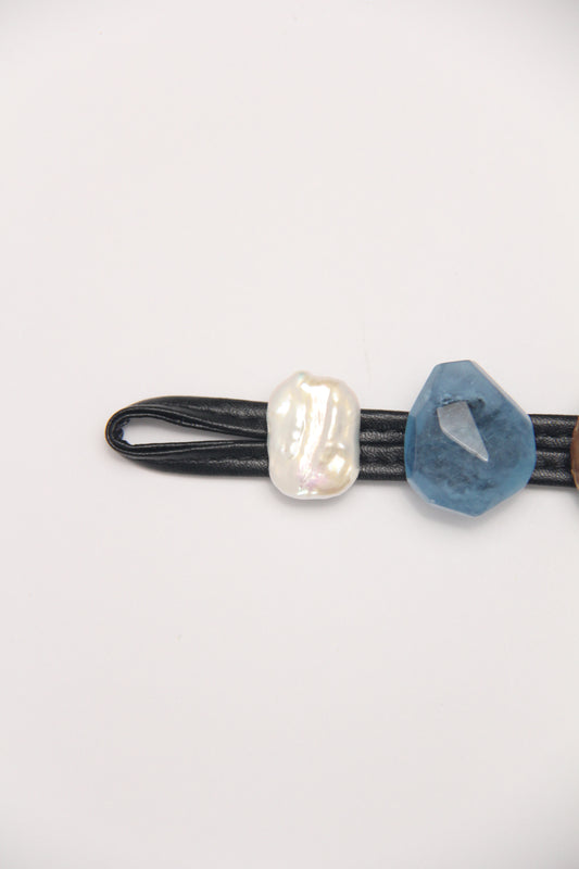 Bracelet: aquamarine, blue lace agate, pearls