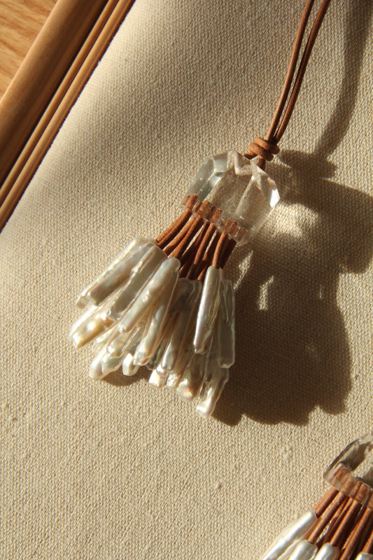 Pendant: quartz, pearls