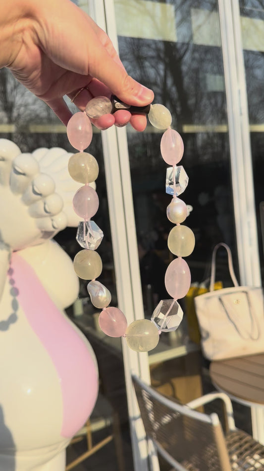 Necklace: pearls, citrine, rose quartz, quartz, ebony