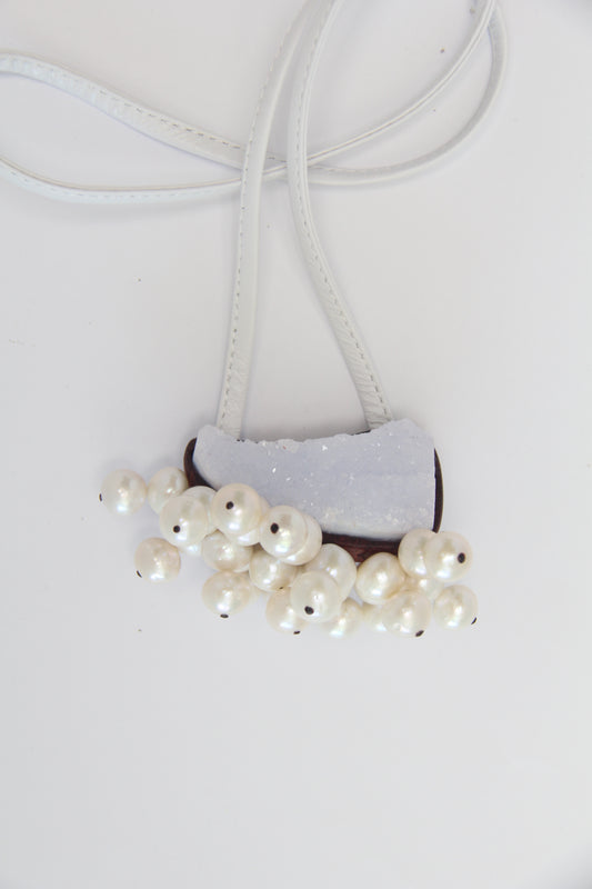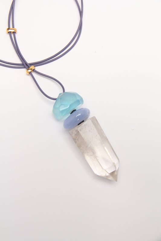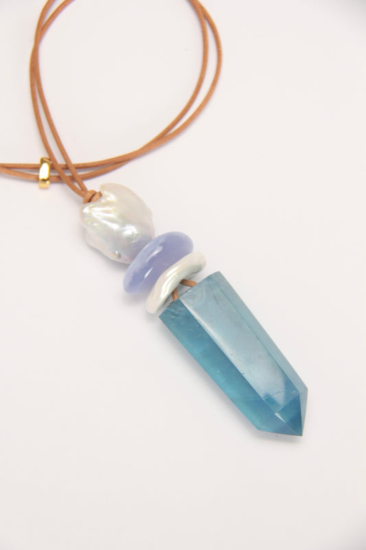 Necklace: pearls, aquamarine, blue lace agate, quartz