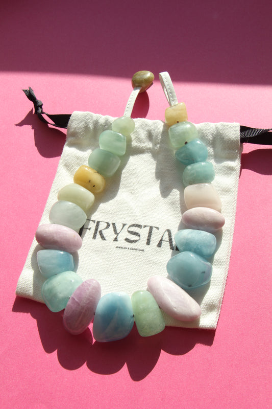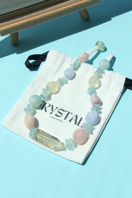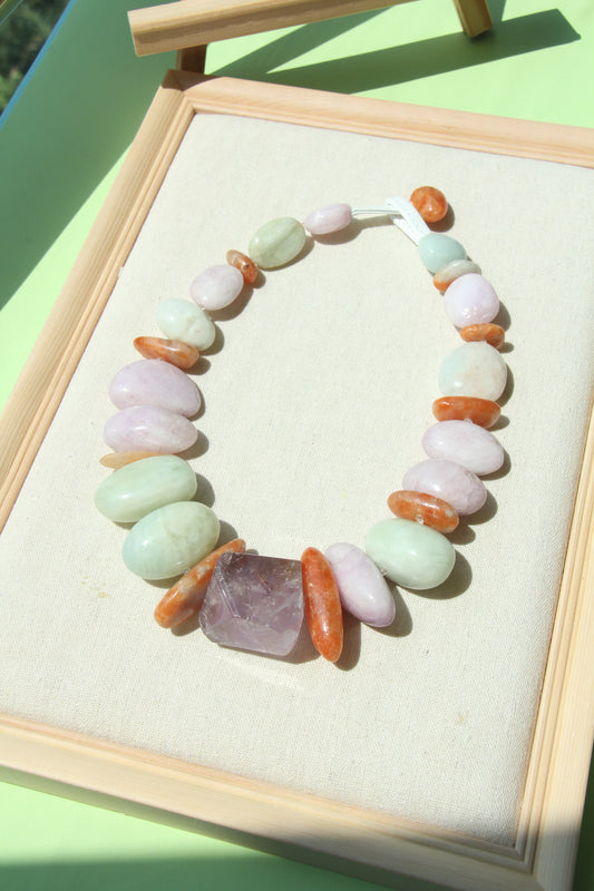 Necklace: citrine, morganite, kunzite, blue lace agate, aquamarine