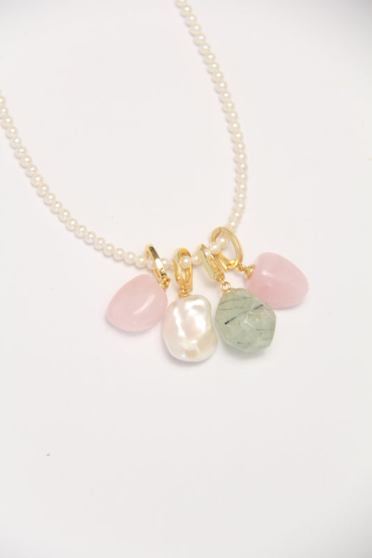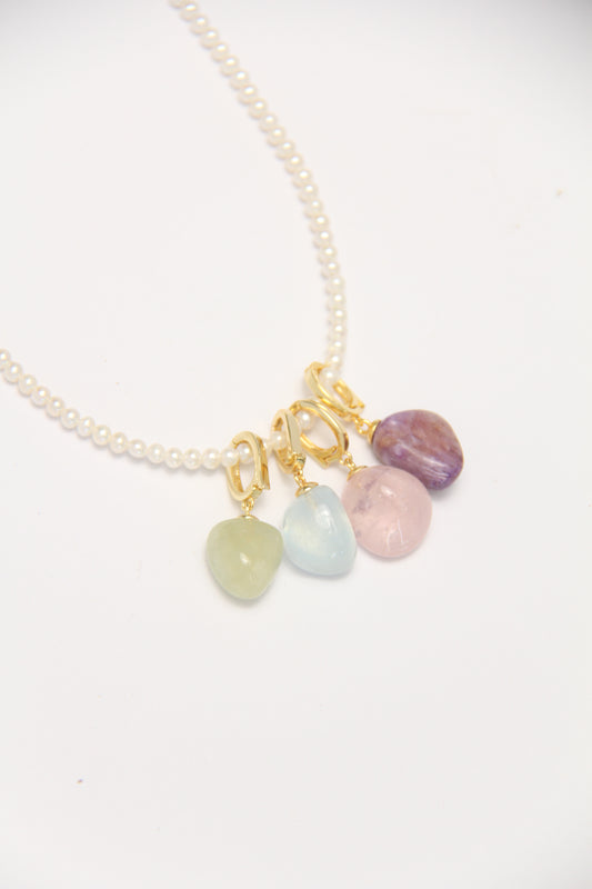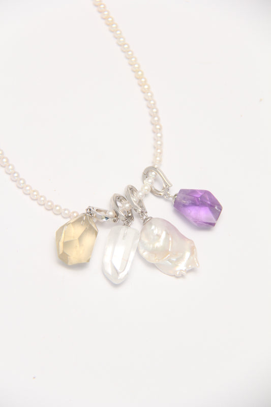 • Necklace: quartz, pearls, titanium magnet, herkimer diamond