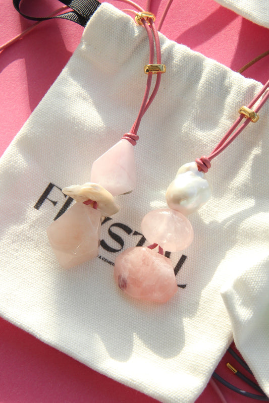 • Chunky Crystal Necklace/Chunky Statement Necklace: mabe pearls, rose quartz