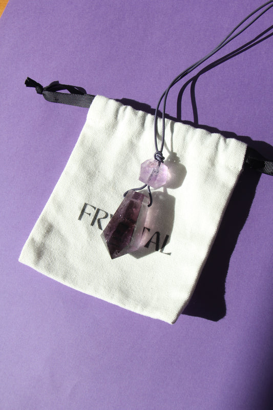 • Necklace: quartz, obsidian, chalcopyrite, titanium magnet, herkimer diamond