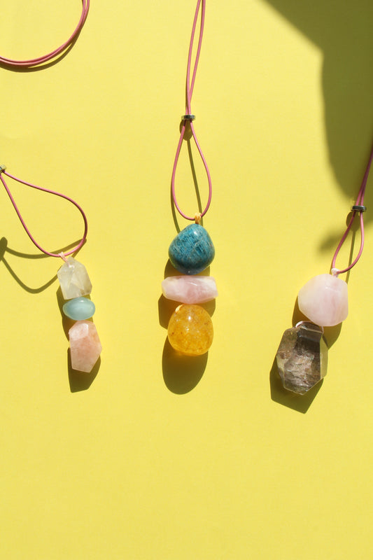 • Necklace: tourmaline, rutilated quartz, obsidian