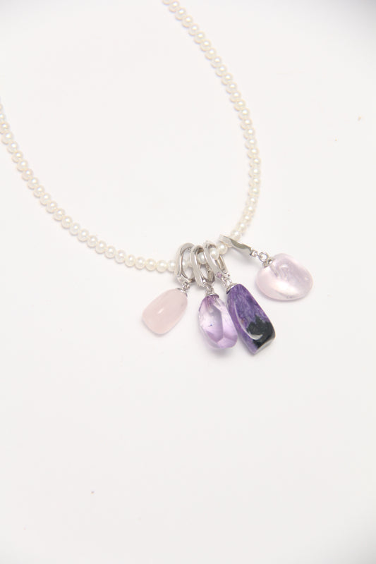 Necklace: dream amethyst, pearls, amethyst, citrine, purple fluorite