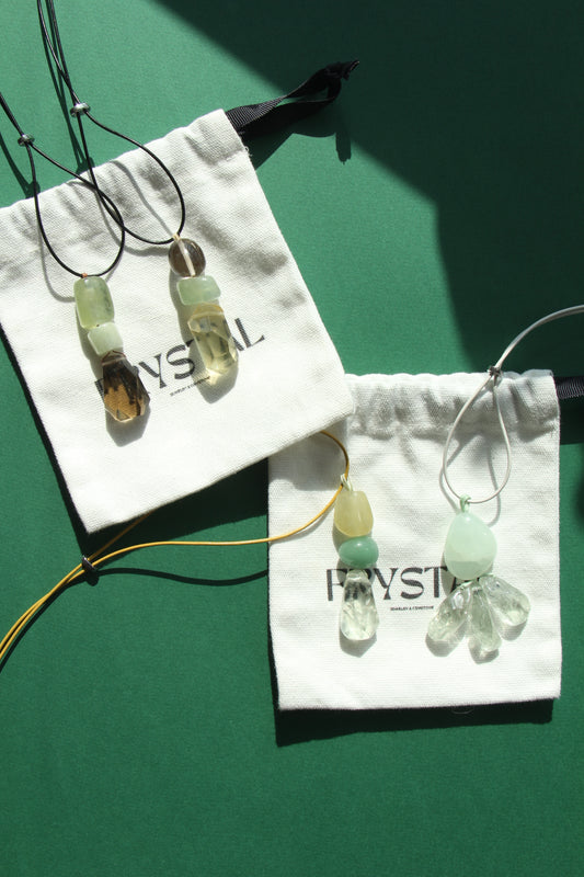 • Necklace: citrine, prehnite, obsidian, chalcopyrite
