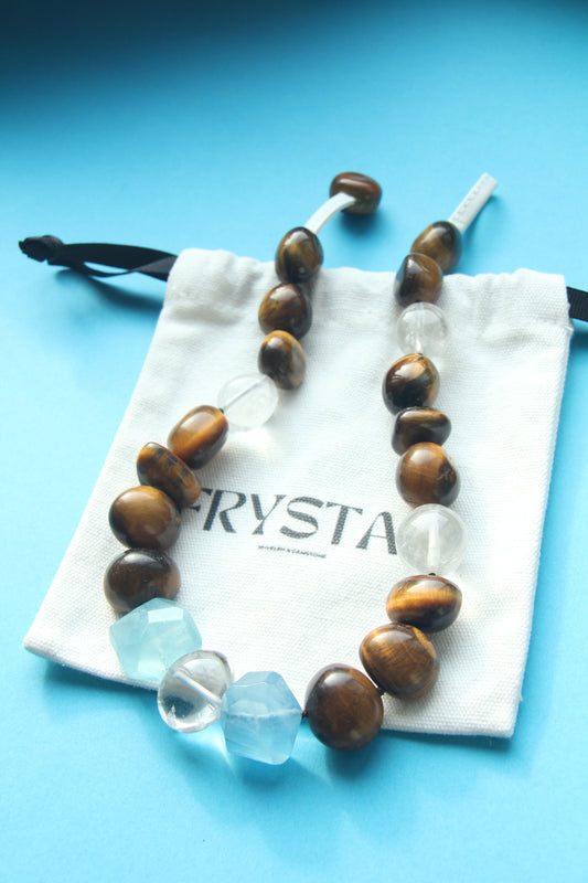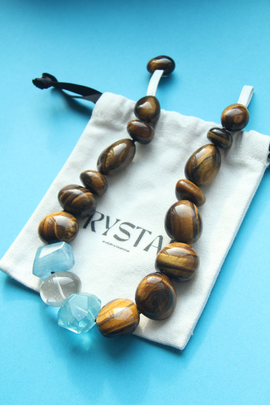 • Chunky Crystal Necklace/Chunky Statement Necklace: tiger‘s eye, golden hair rutilated quartz