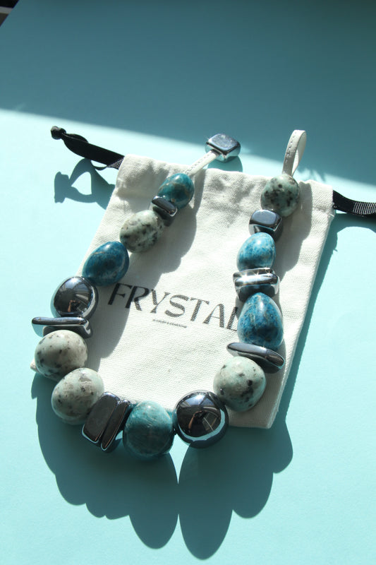 • Chunky Crystal Necklace/Chunky Statement Necklace: Kyanite, lapis lazuli, pearls, red jasper stone, tiger's eye stone