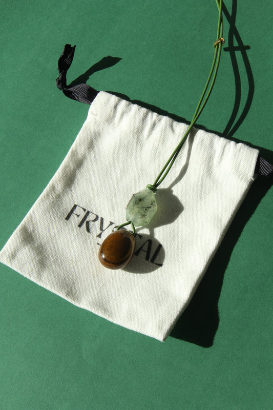 Necklace: tiger's eye, prehnite, phantom quartz, green aventurine
