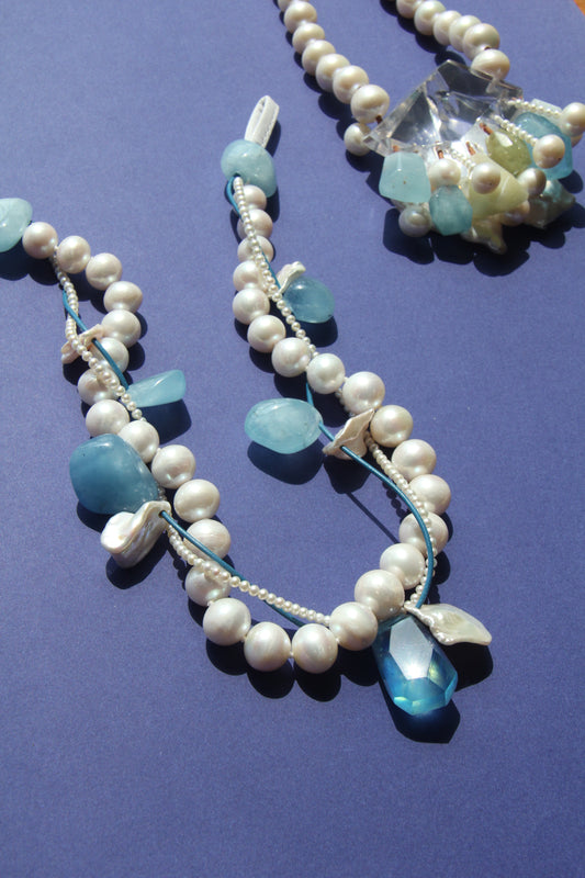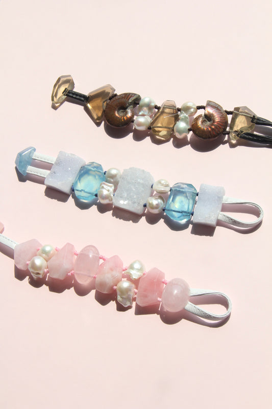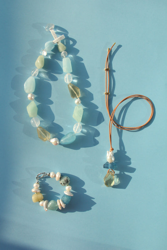 Bracelet: aquamarine, ammonite, pearl, citrine
