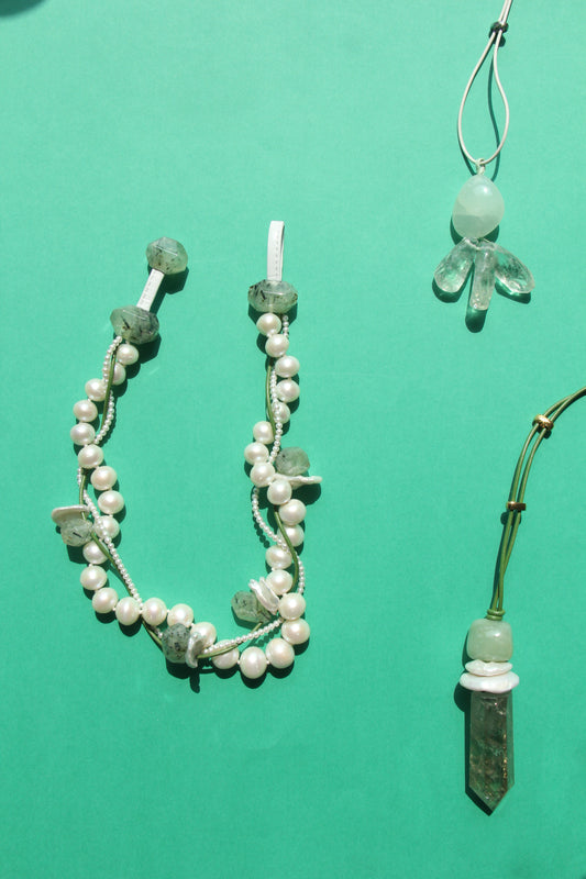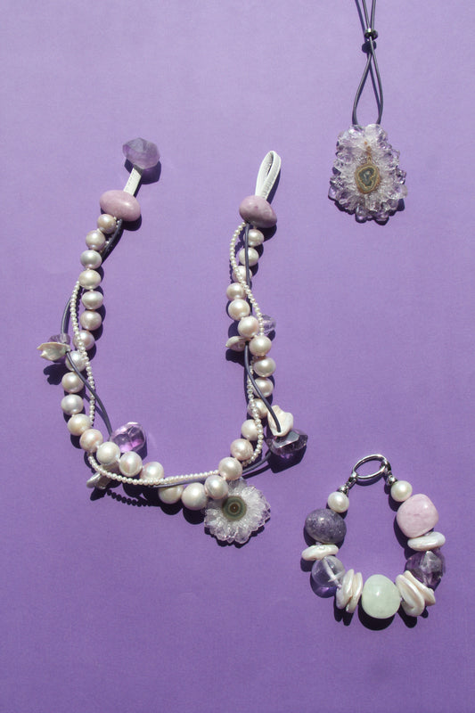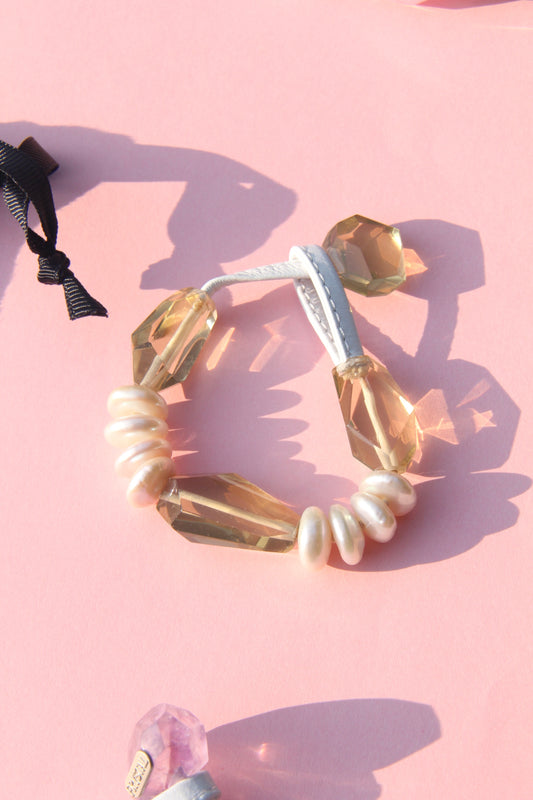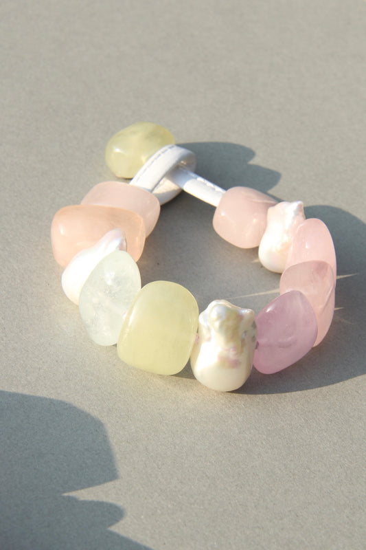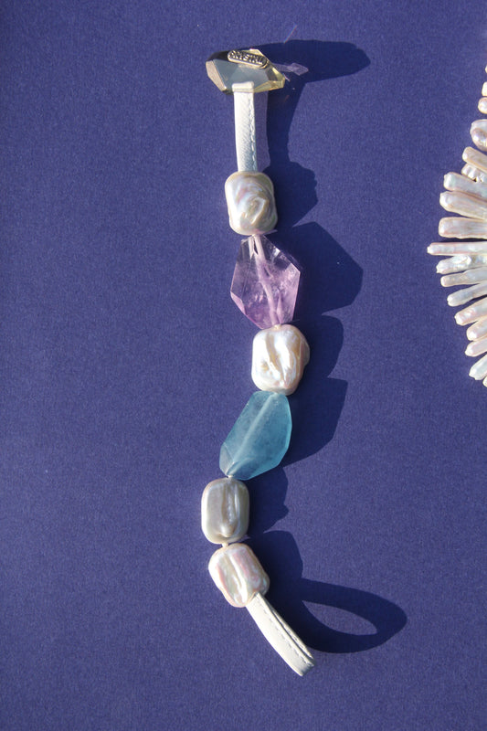 Bracelet: aquamarine, amethyst, citrine, pearls