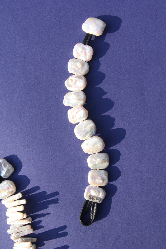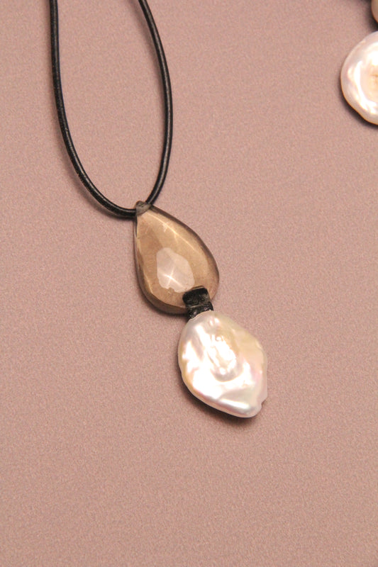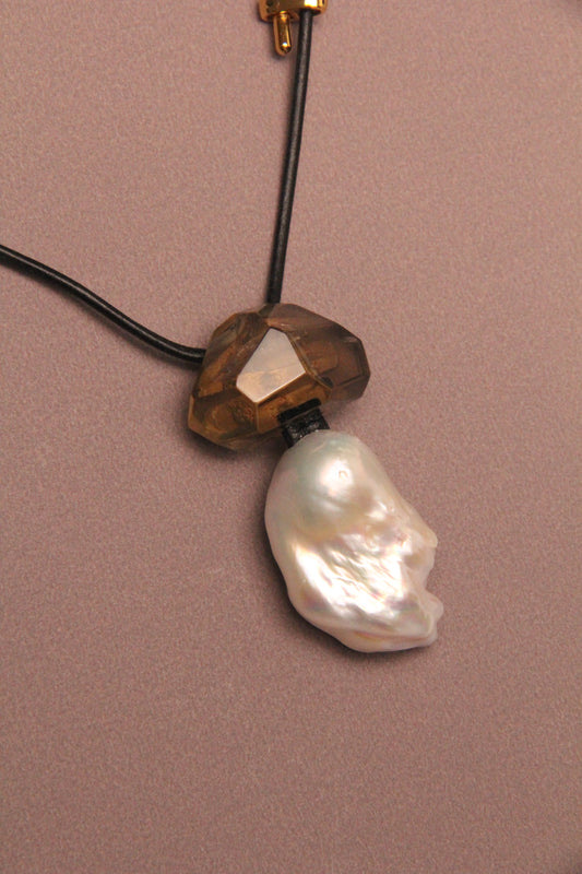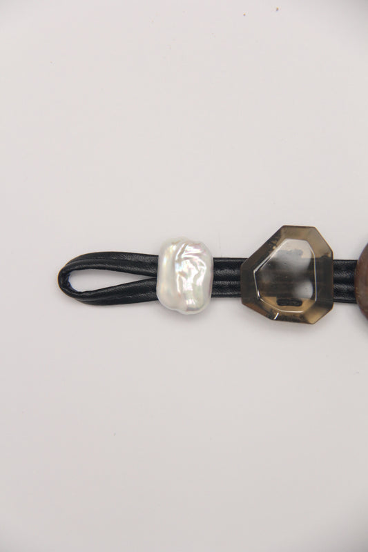Bracelet: ammonite fossils, smoky quartz, pearls