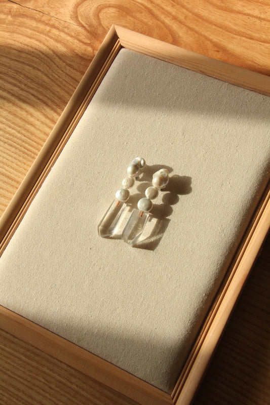 Necklace: pearls, citrine, rose quartz, quartz, ebony