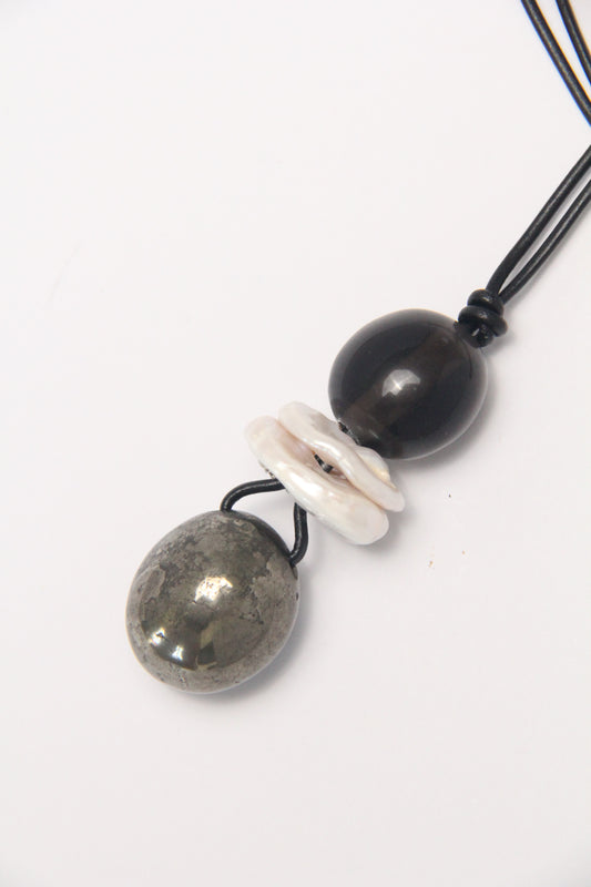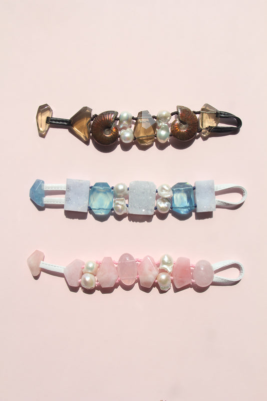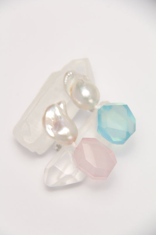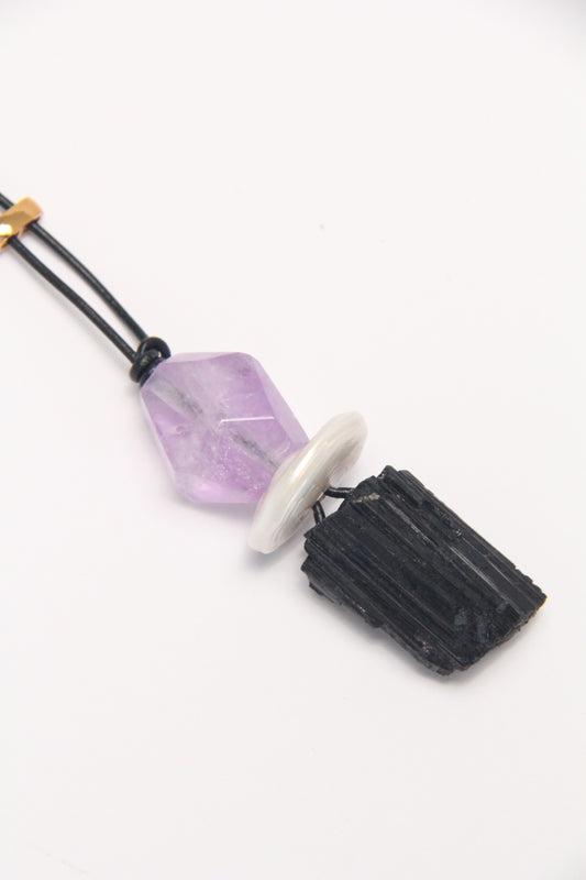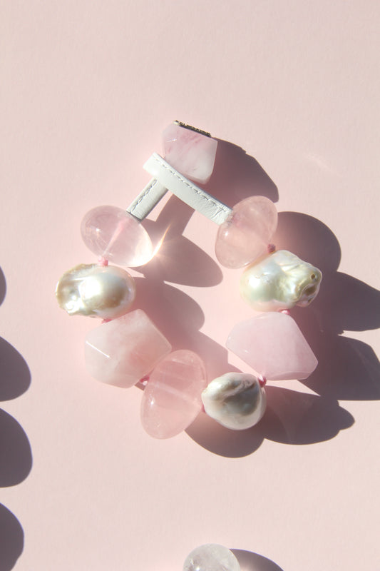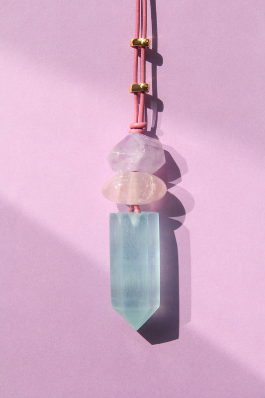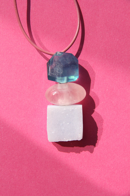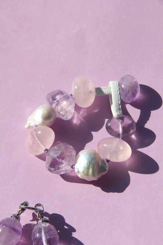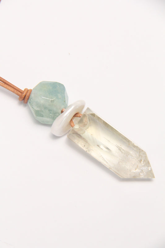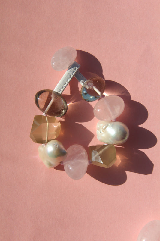 Necklace: rose quartz, aquamarine, pearls, morganite, phantom quartz