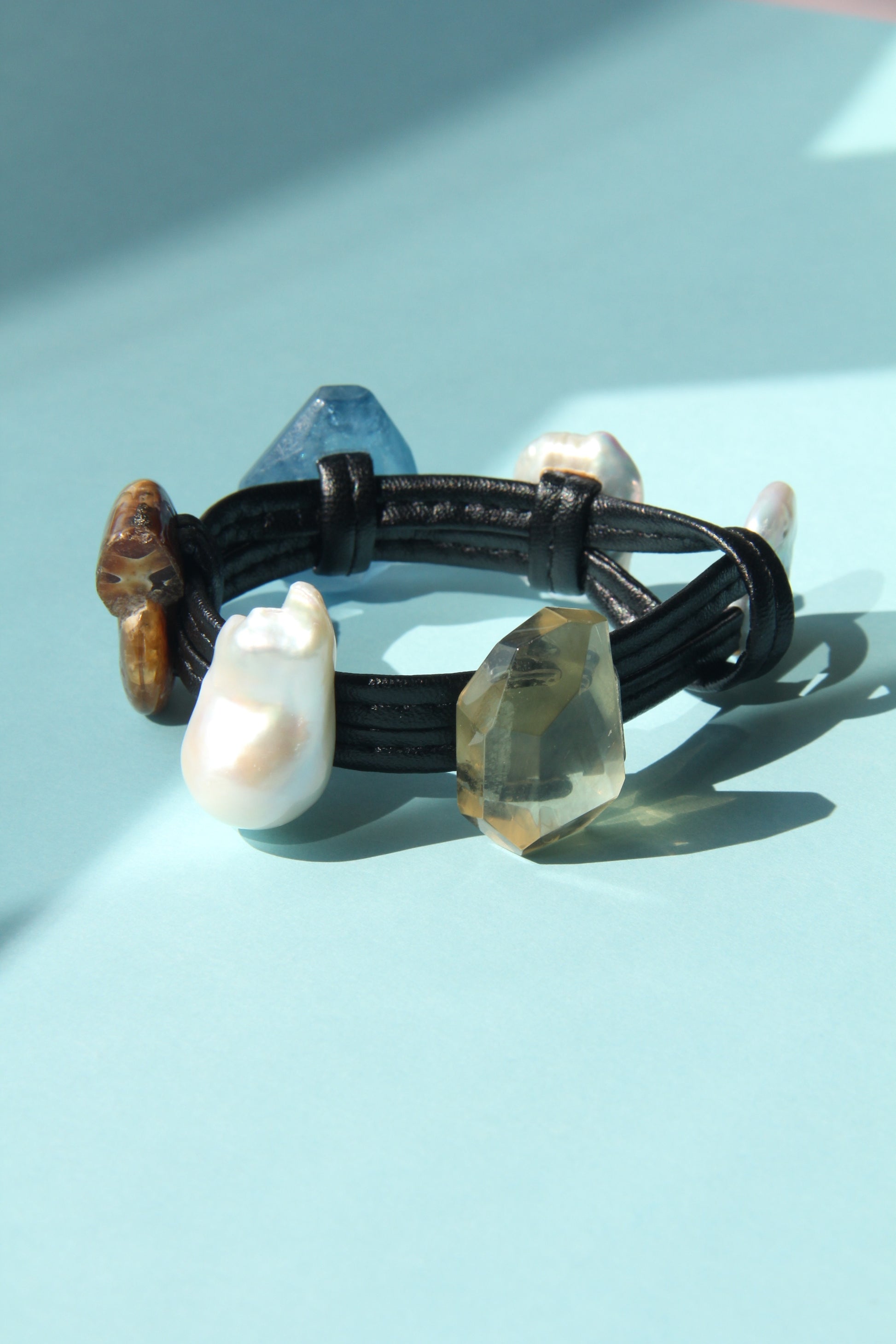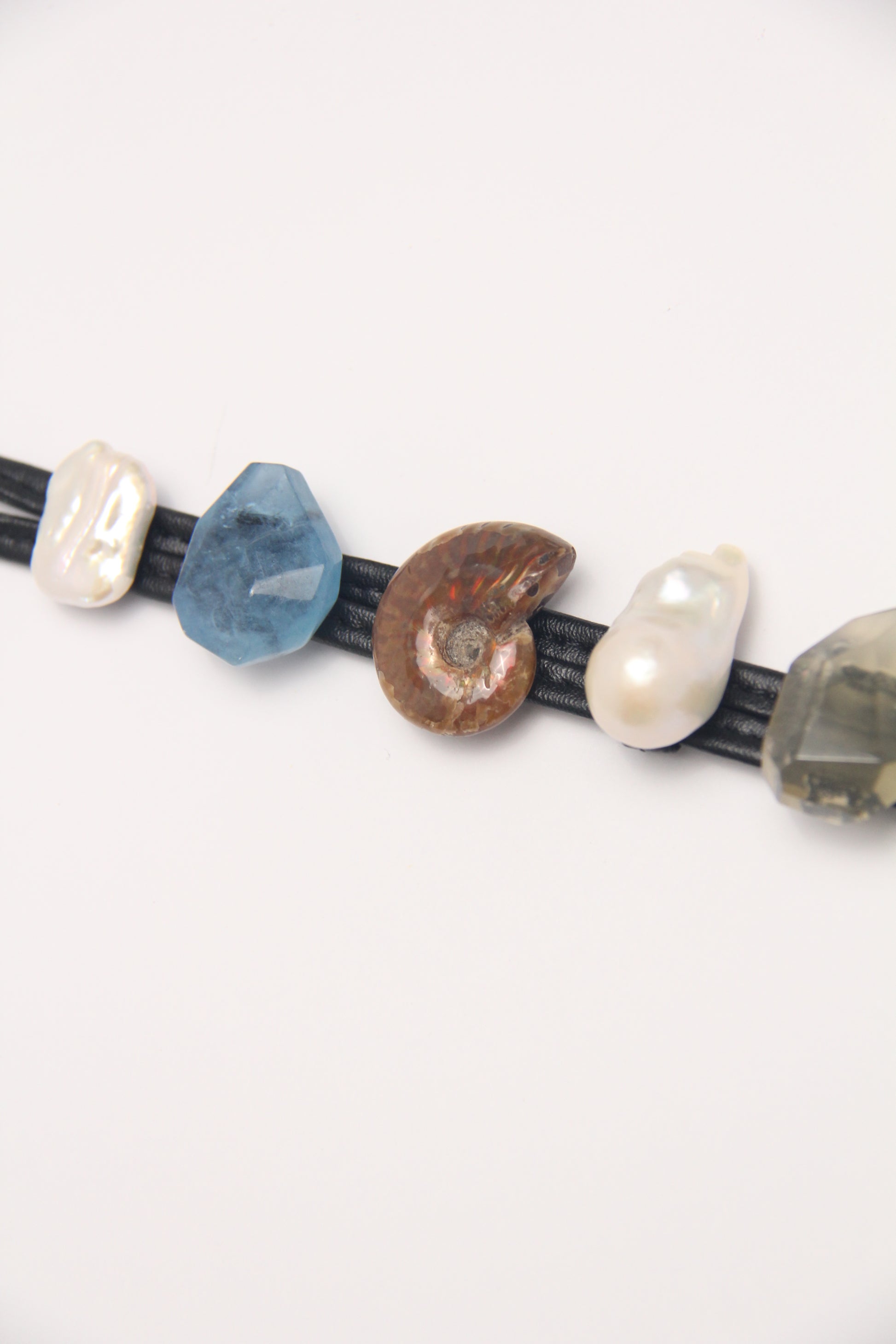Bracelet: aquamarine, ammonite, pearl, citrine