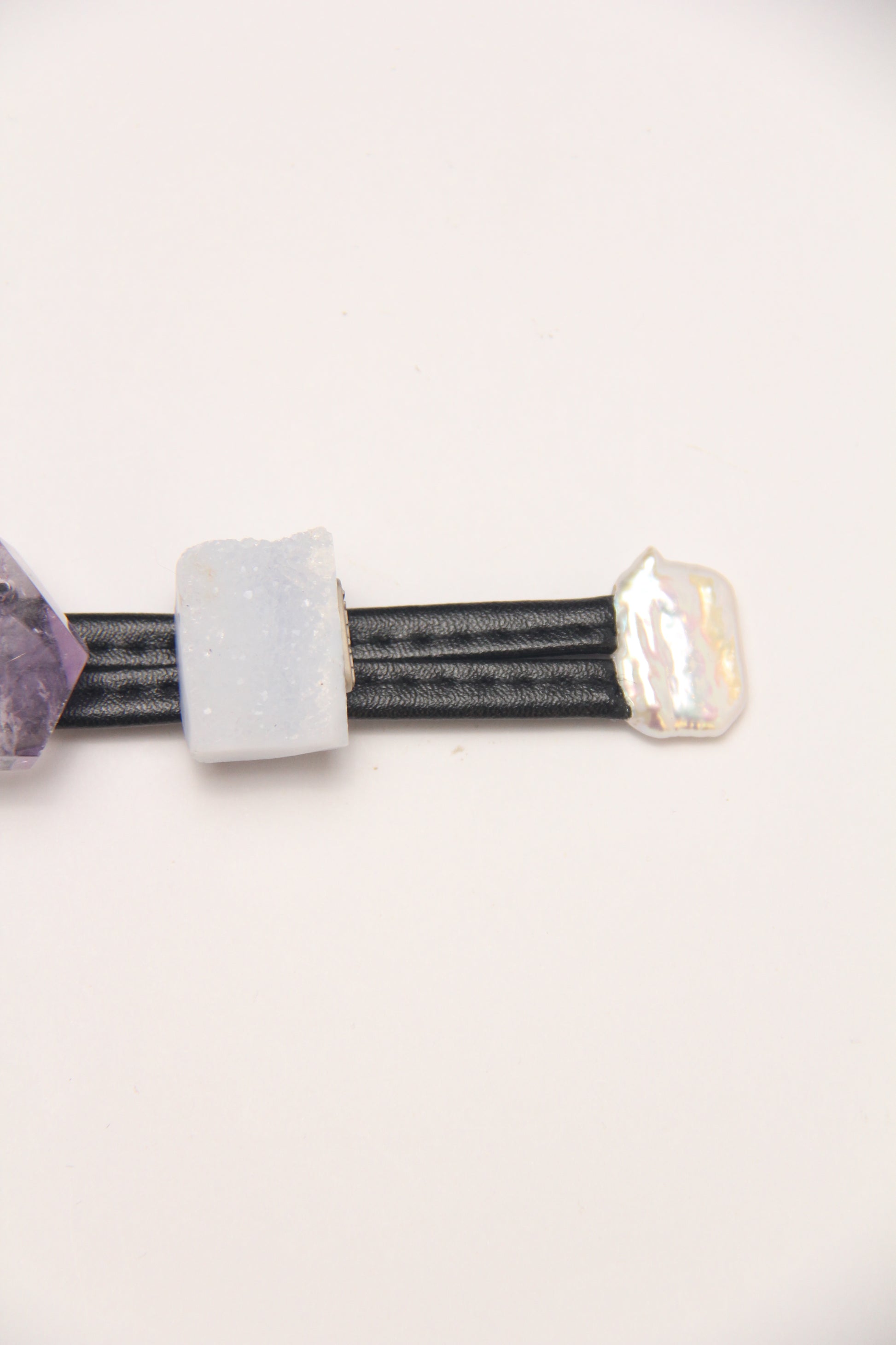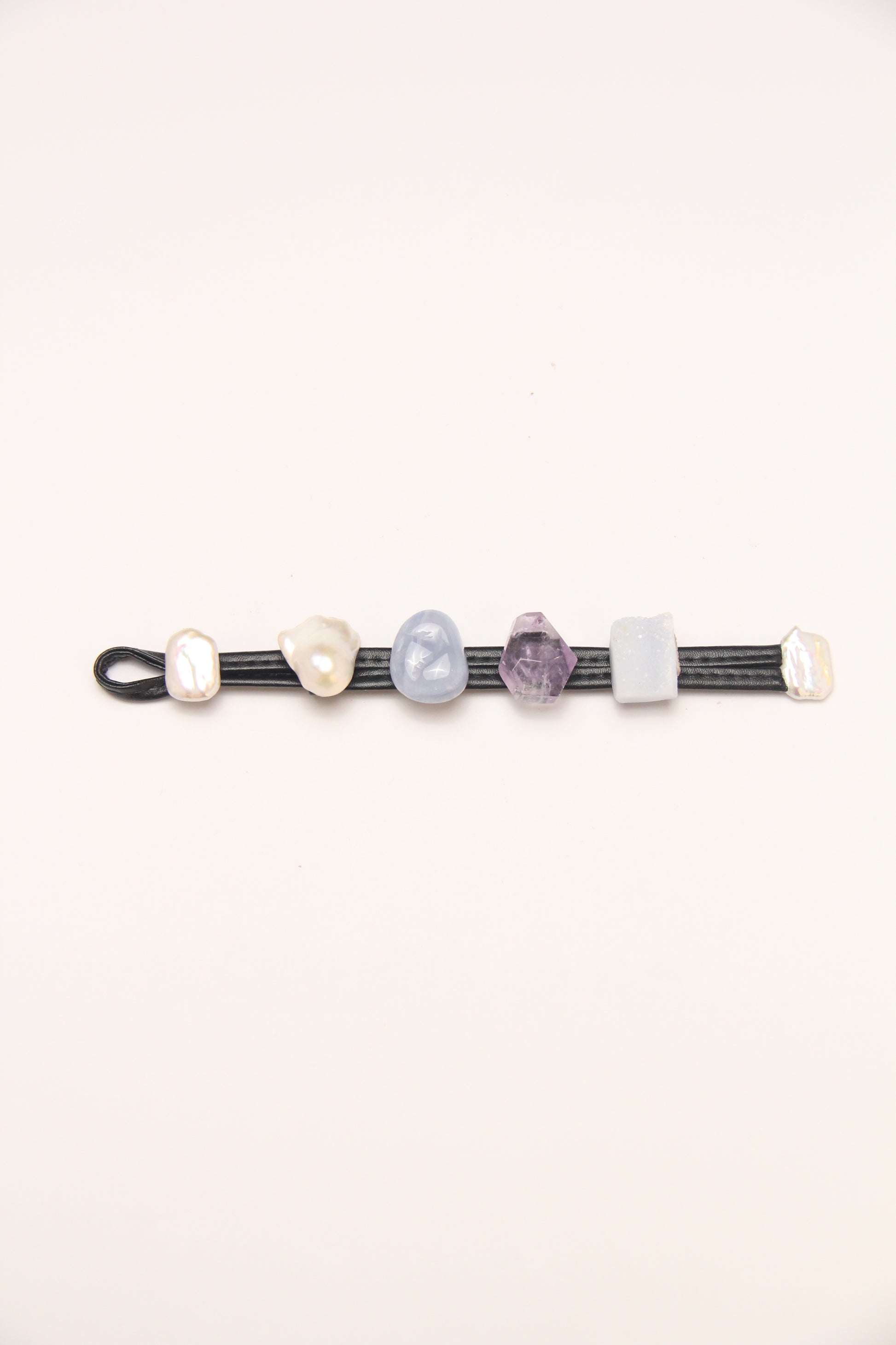 Bracelet: pearls, blue lace agate, amethyst, blue lace agate