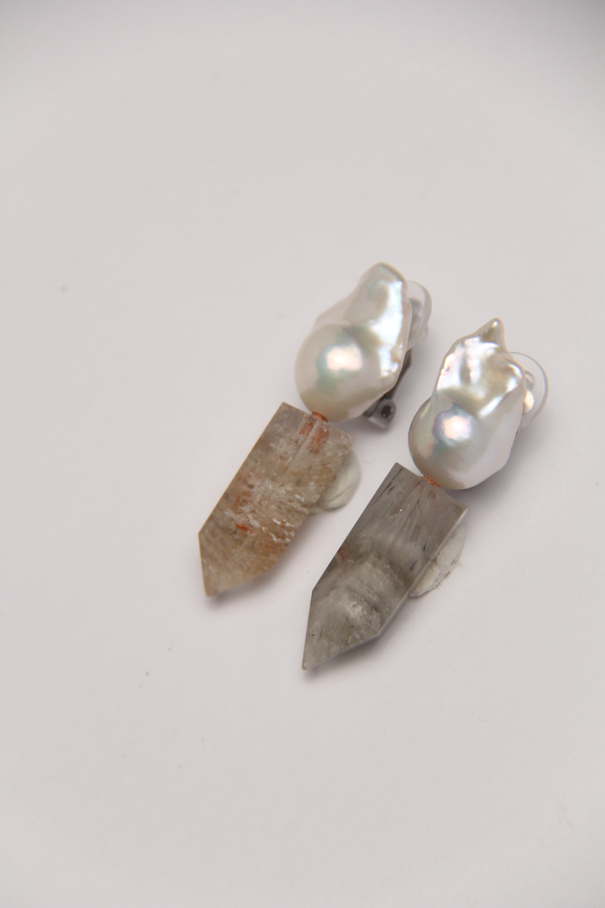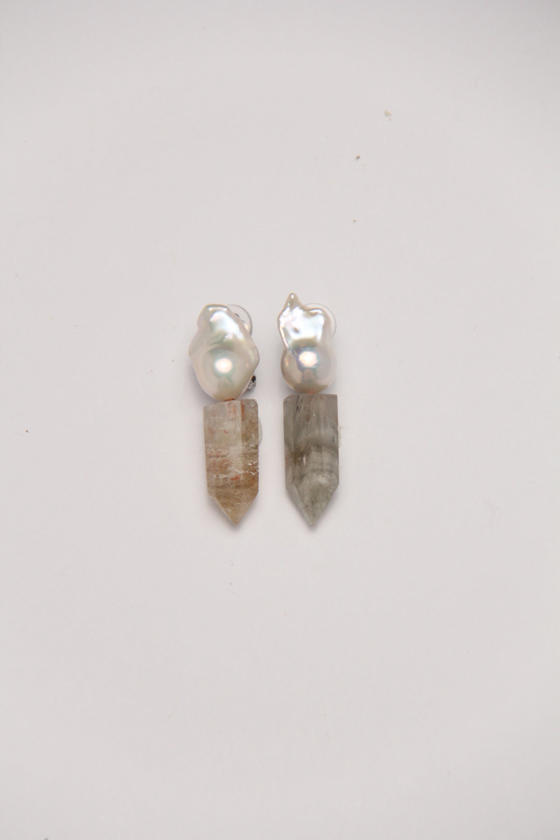Earrings: pearls, phantom quartz
