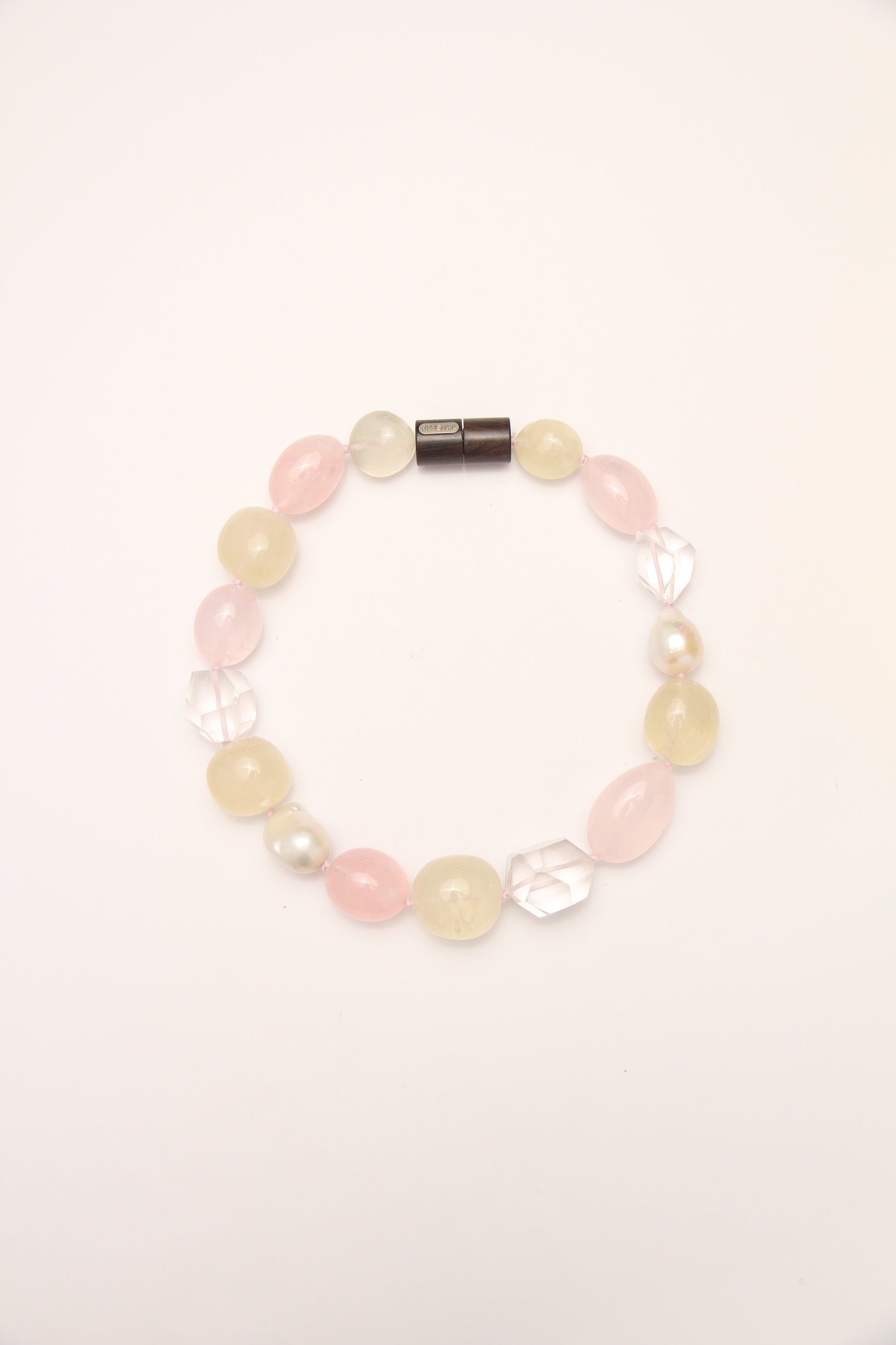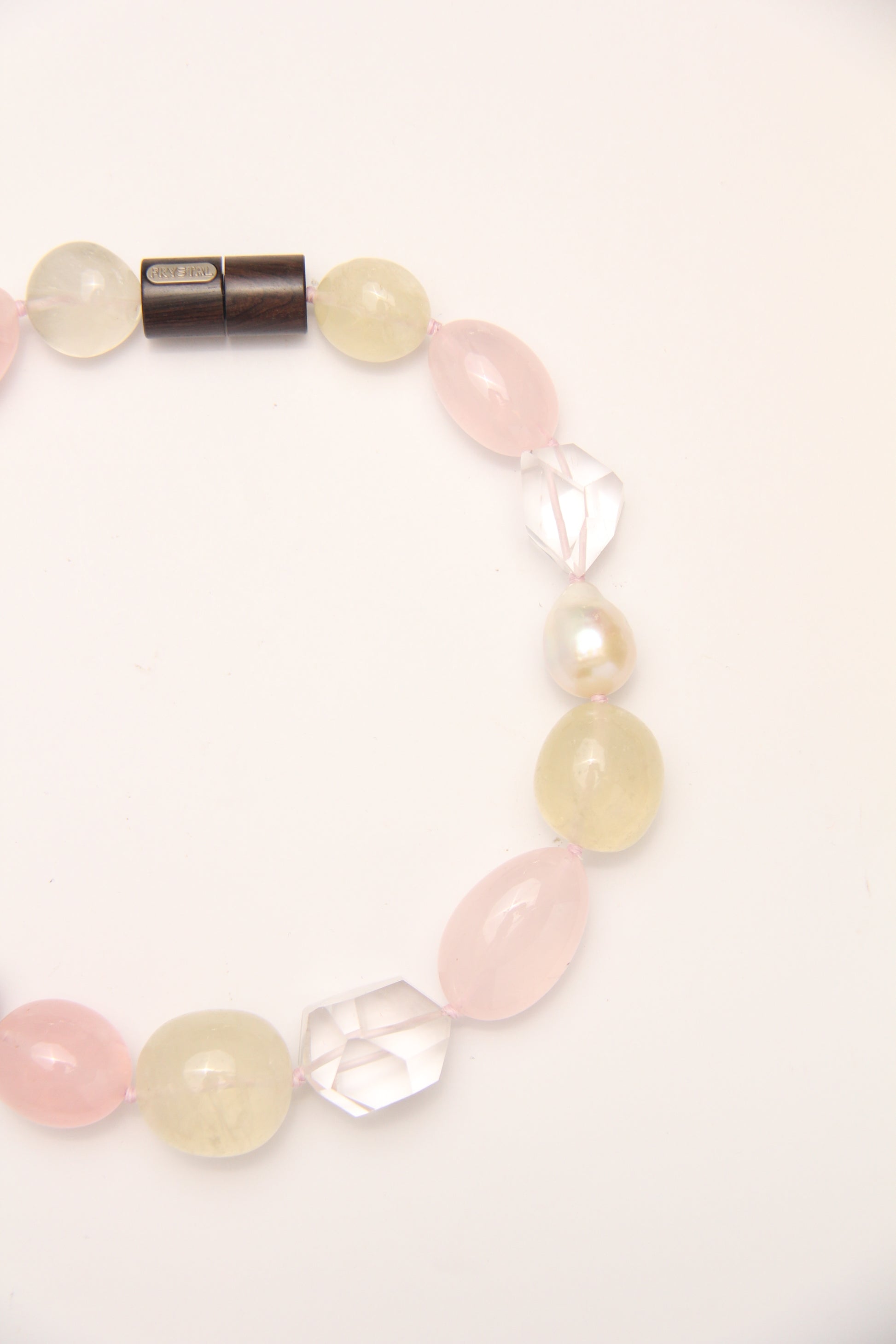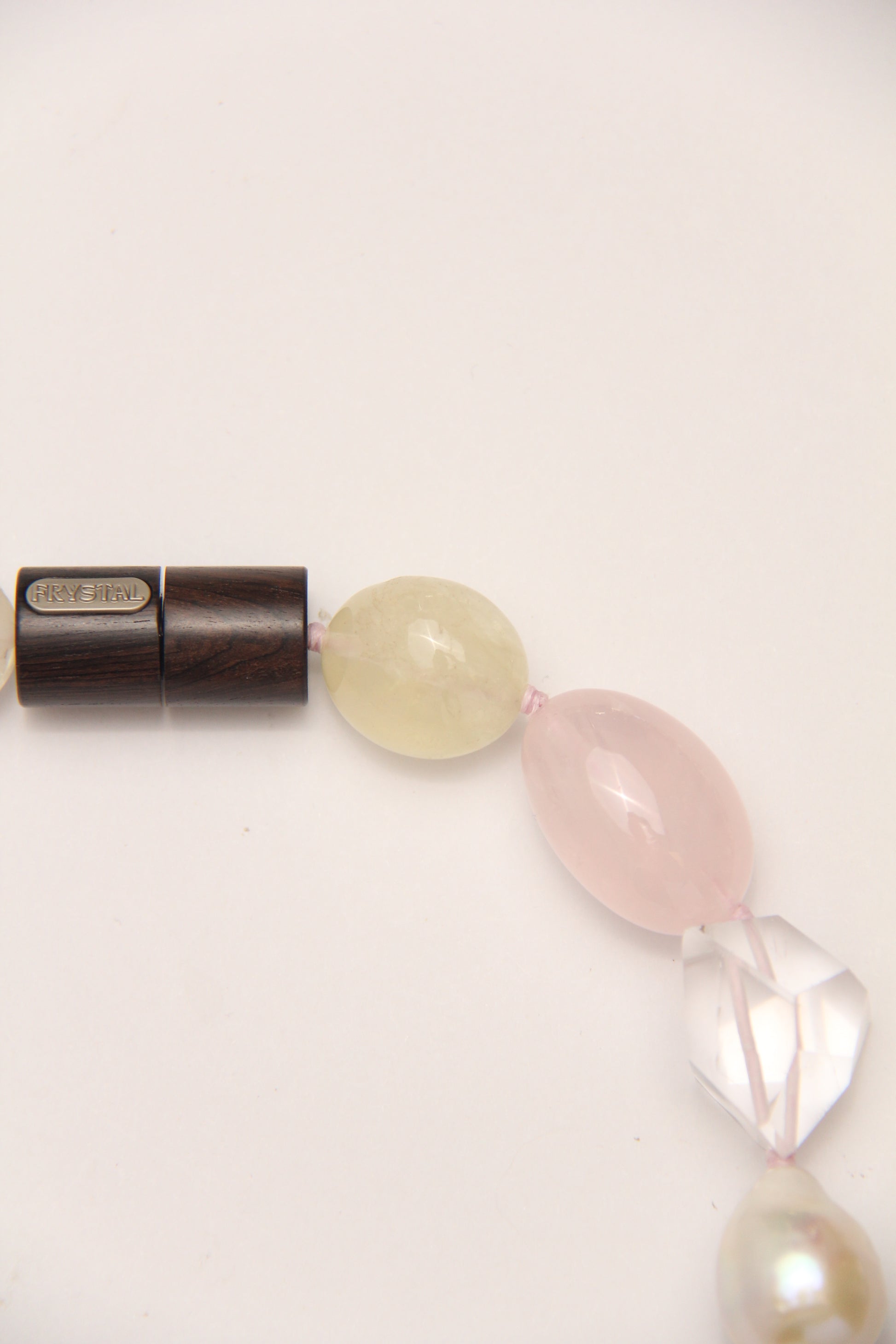 Materials:pearls, citrine, rose quartz, quartz, ebony