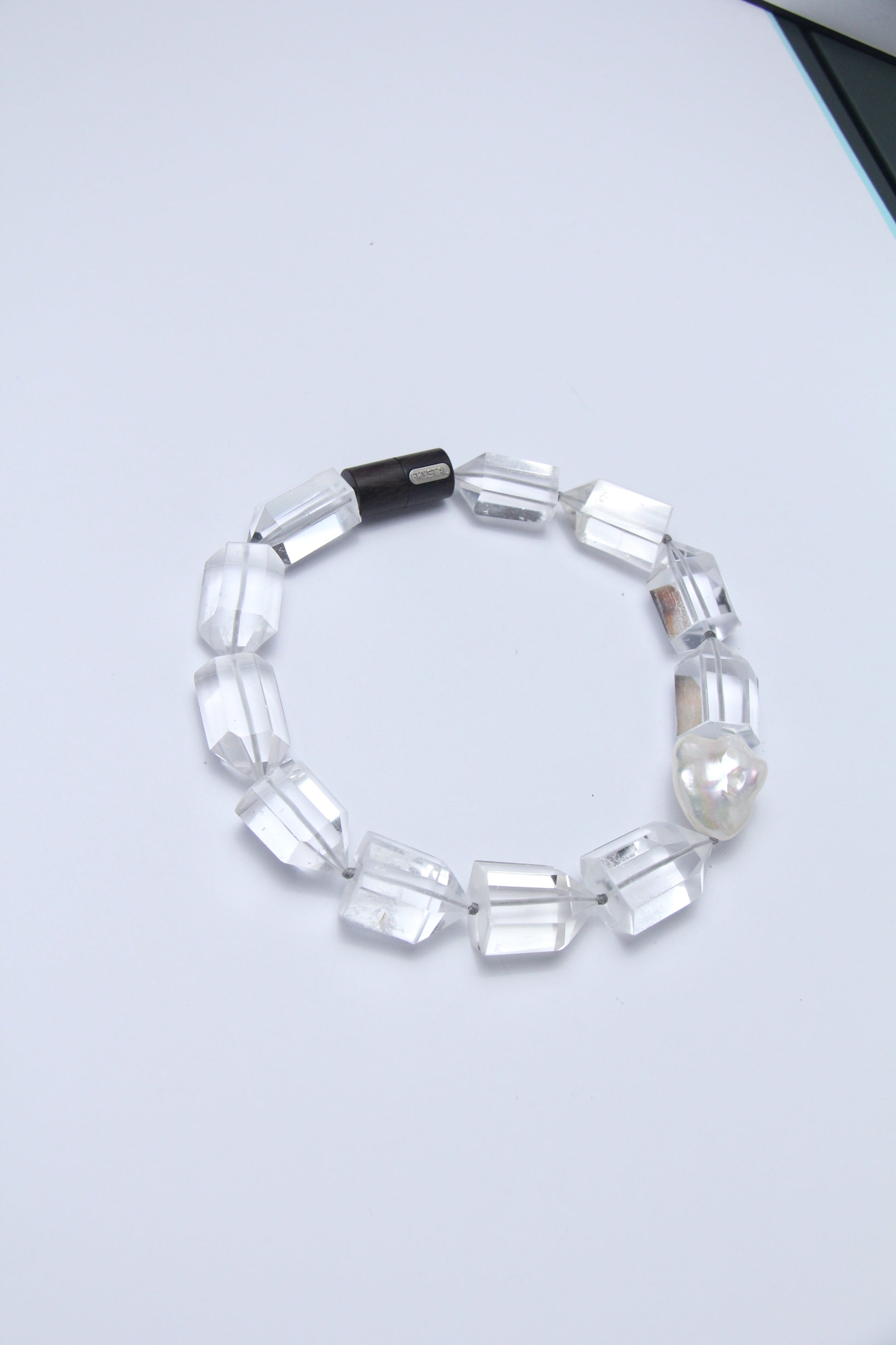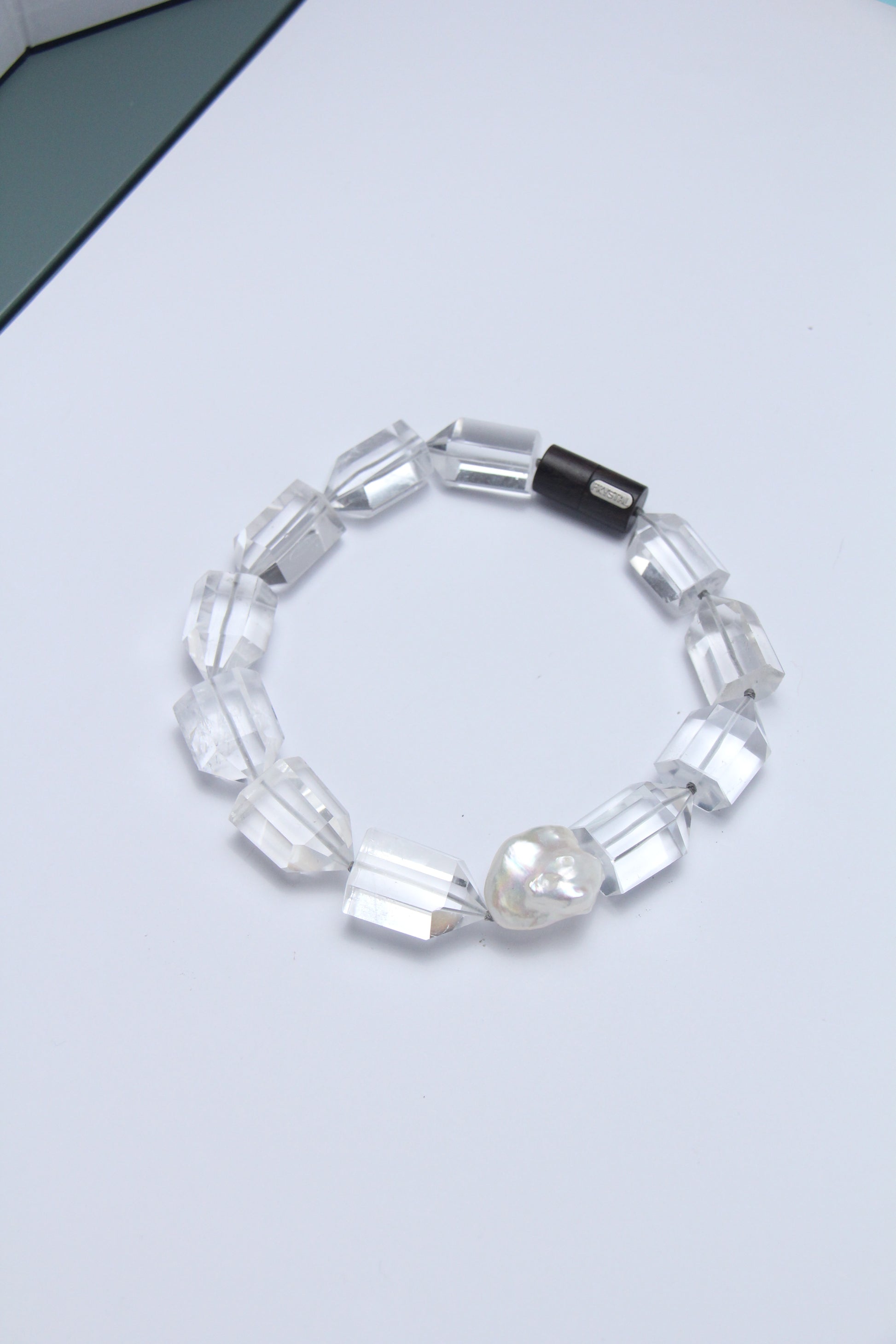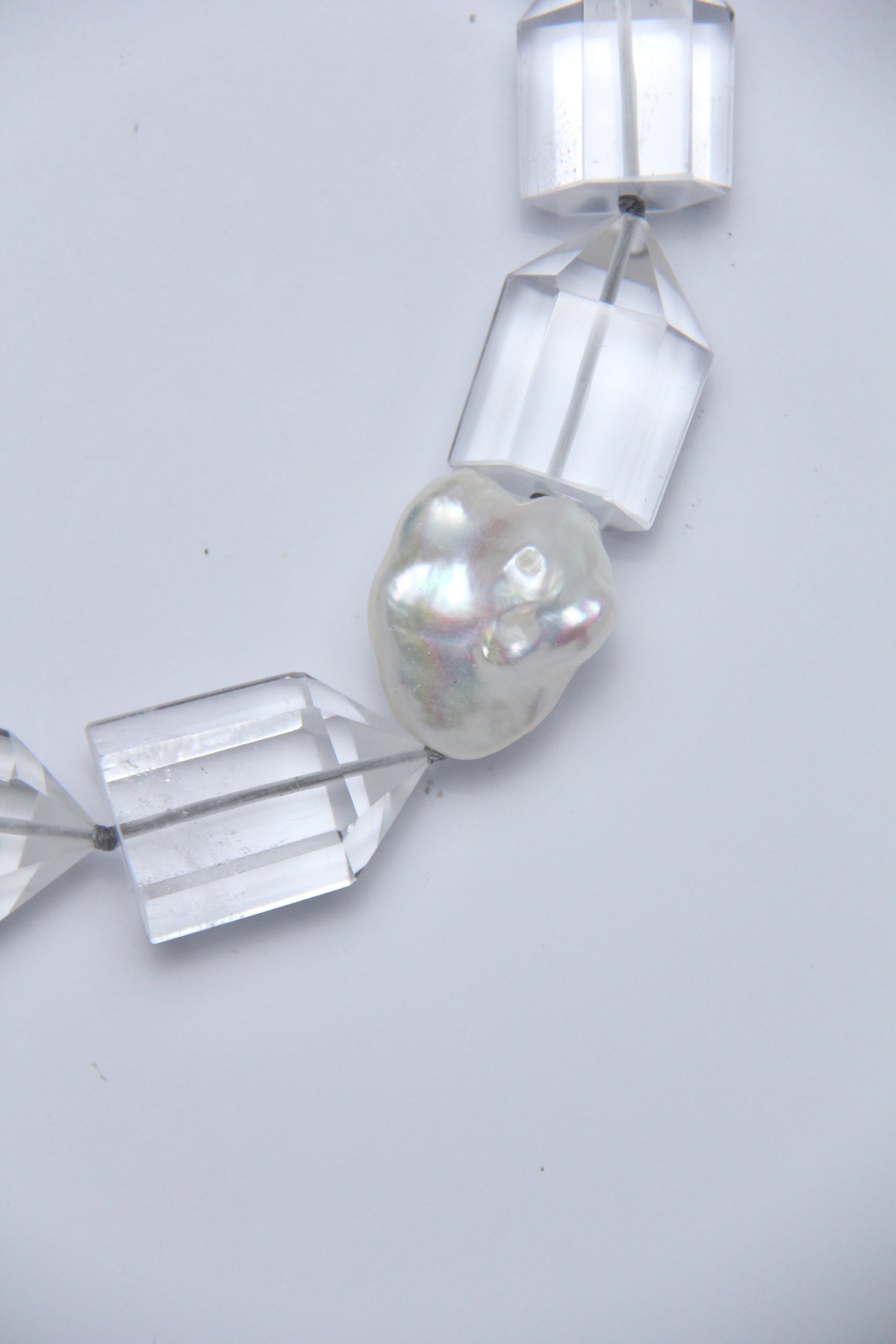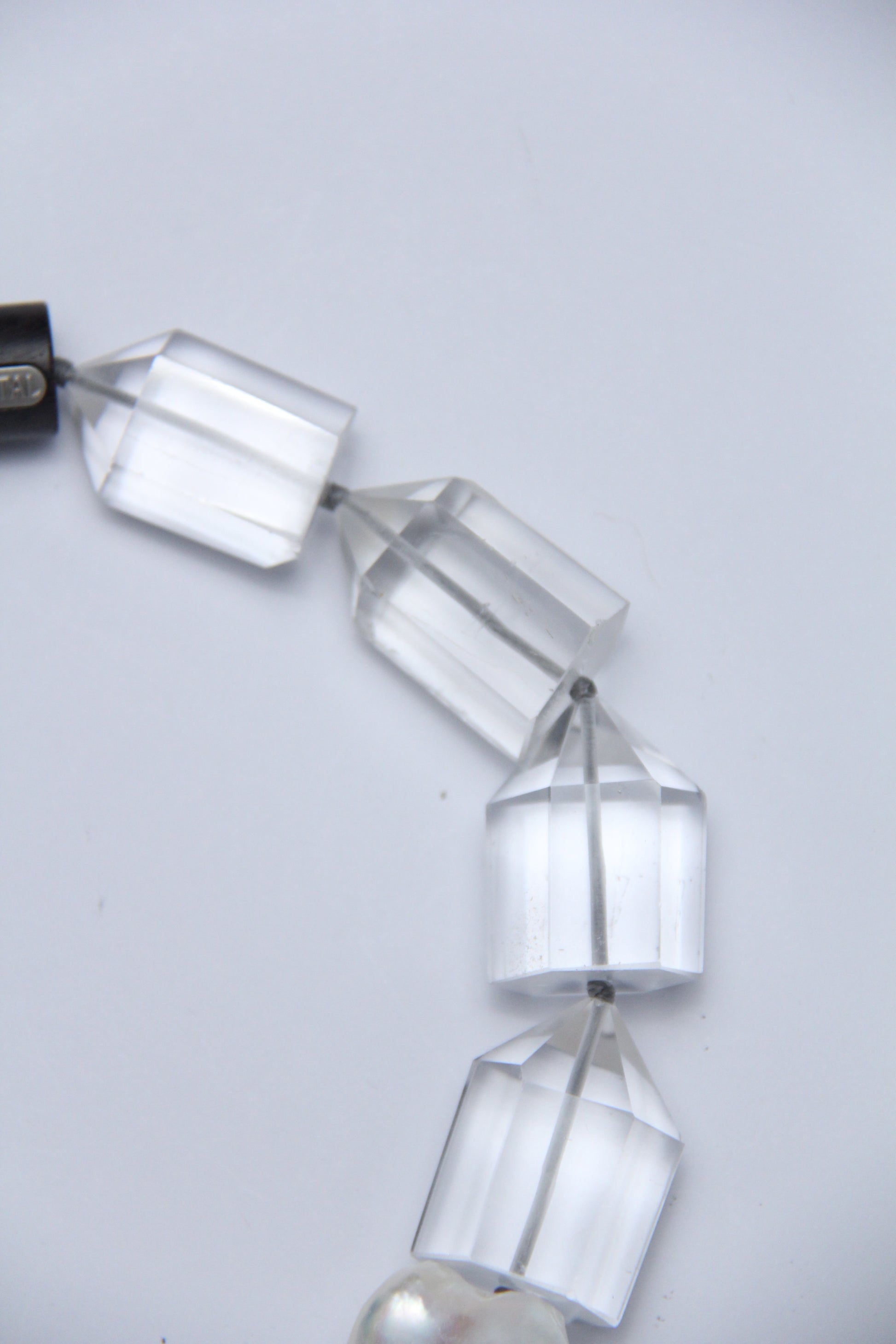 Necklace: pearls, quartz, ebony