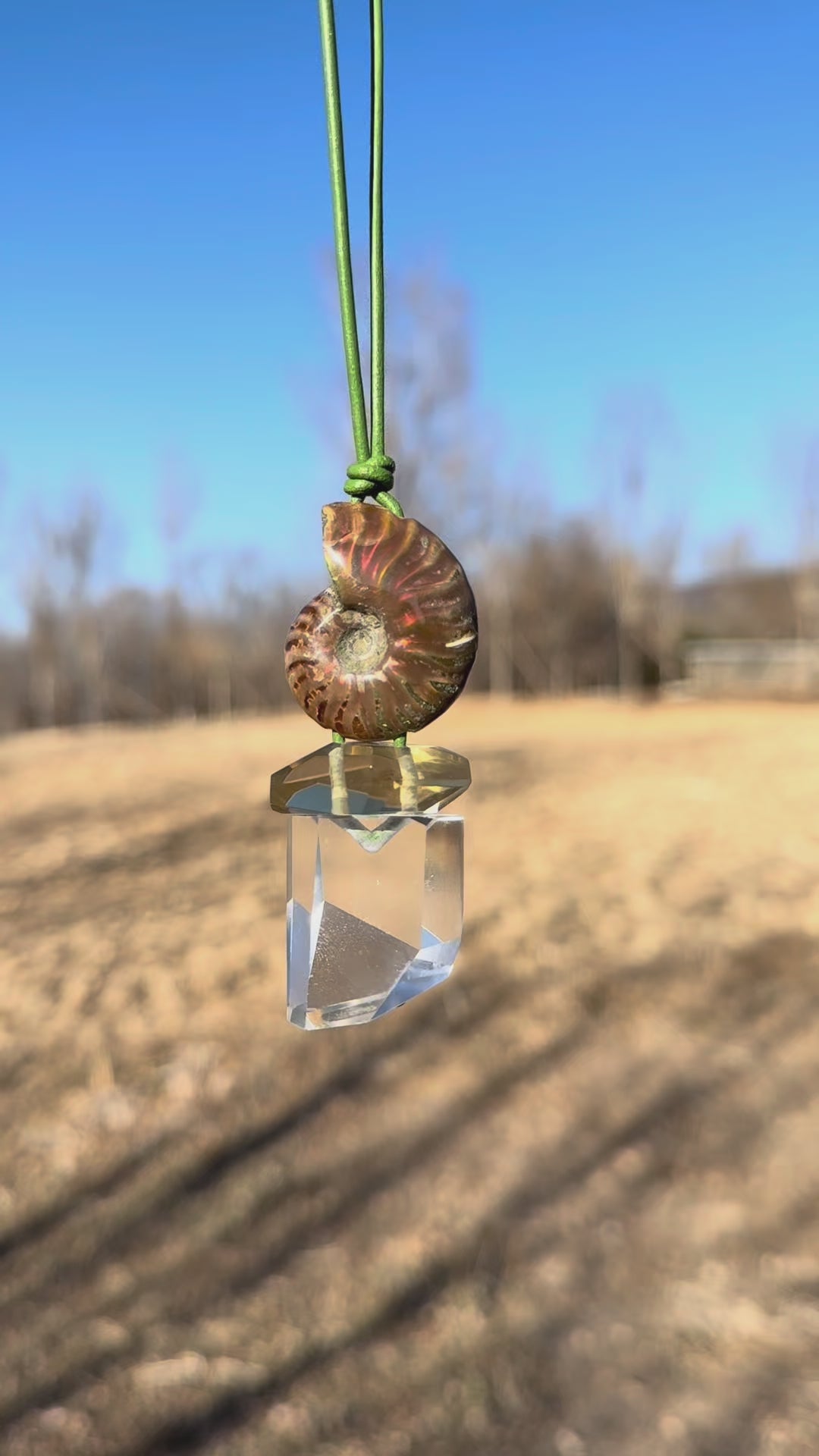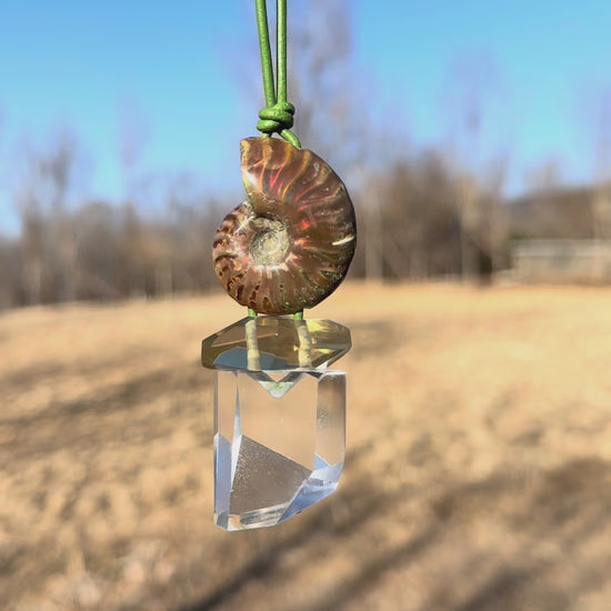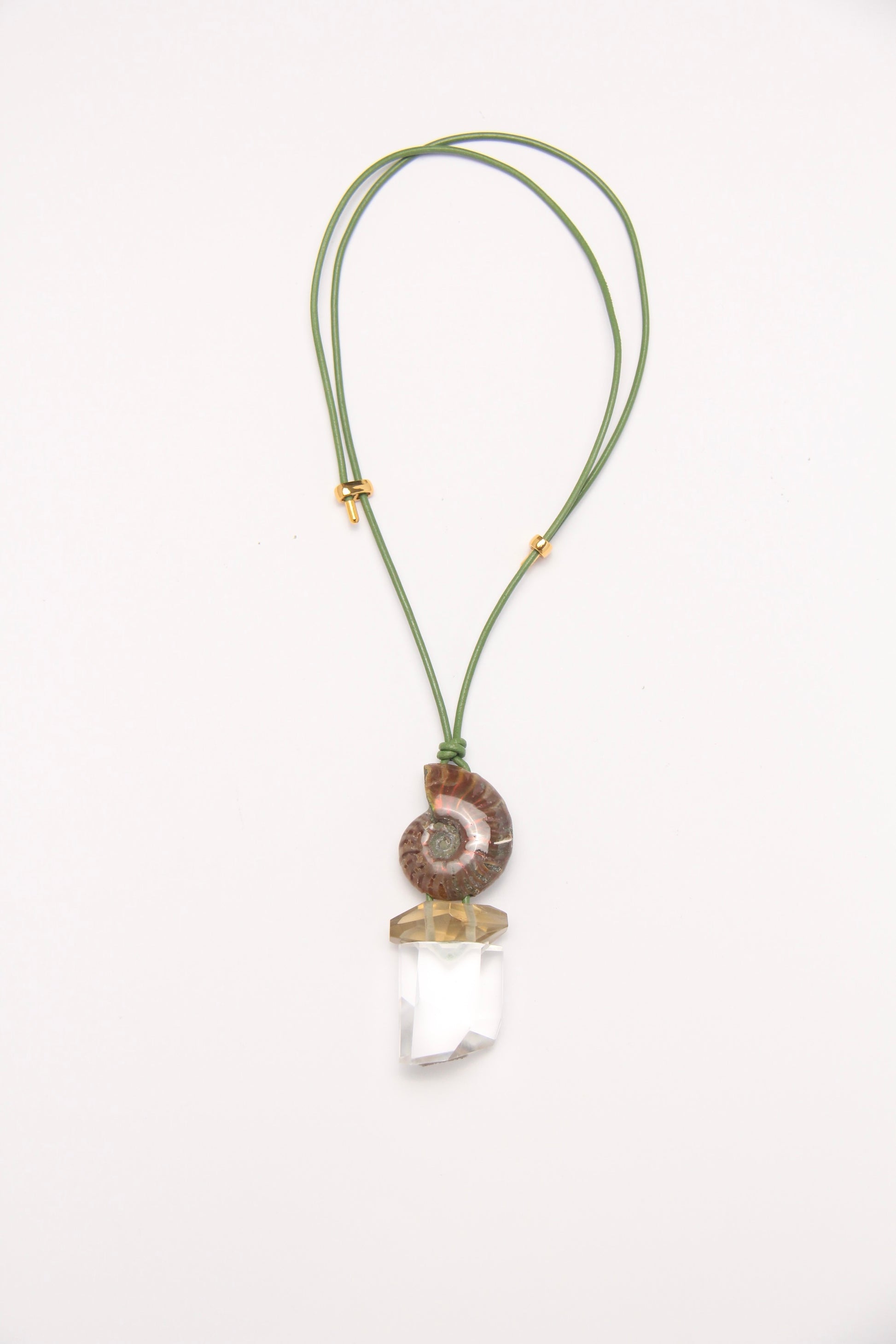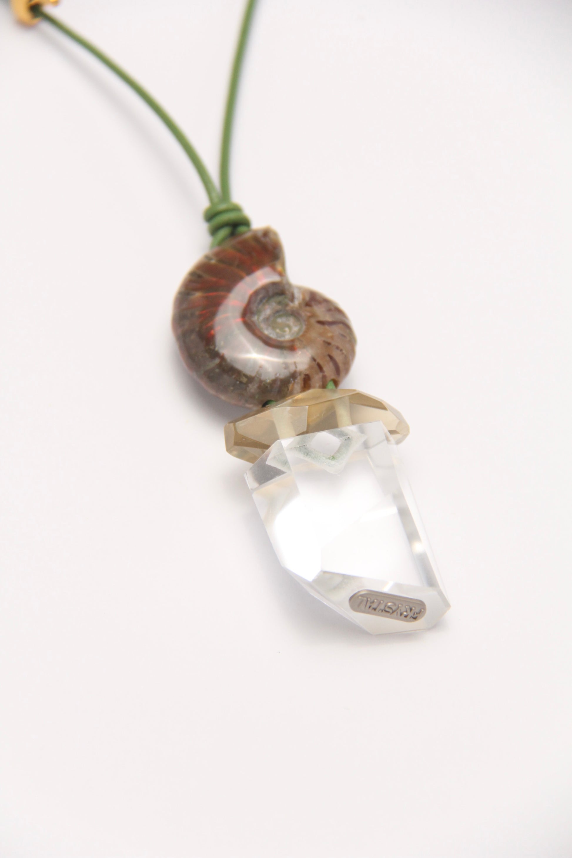 Pendant: ammonite, citrine, quartz