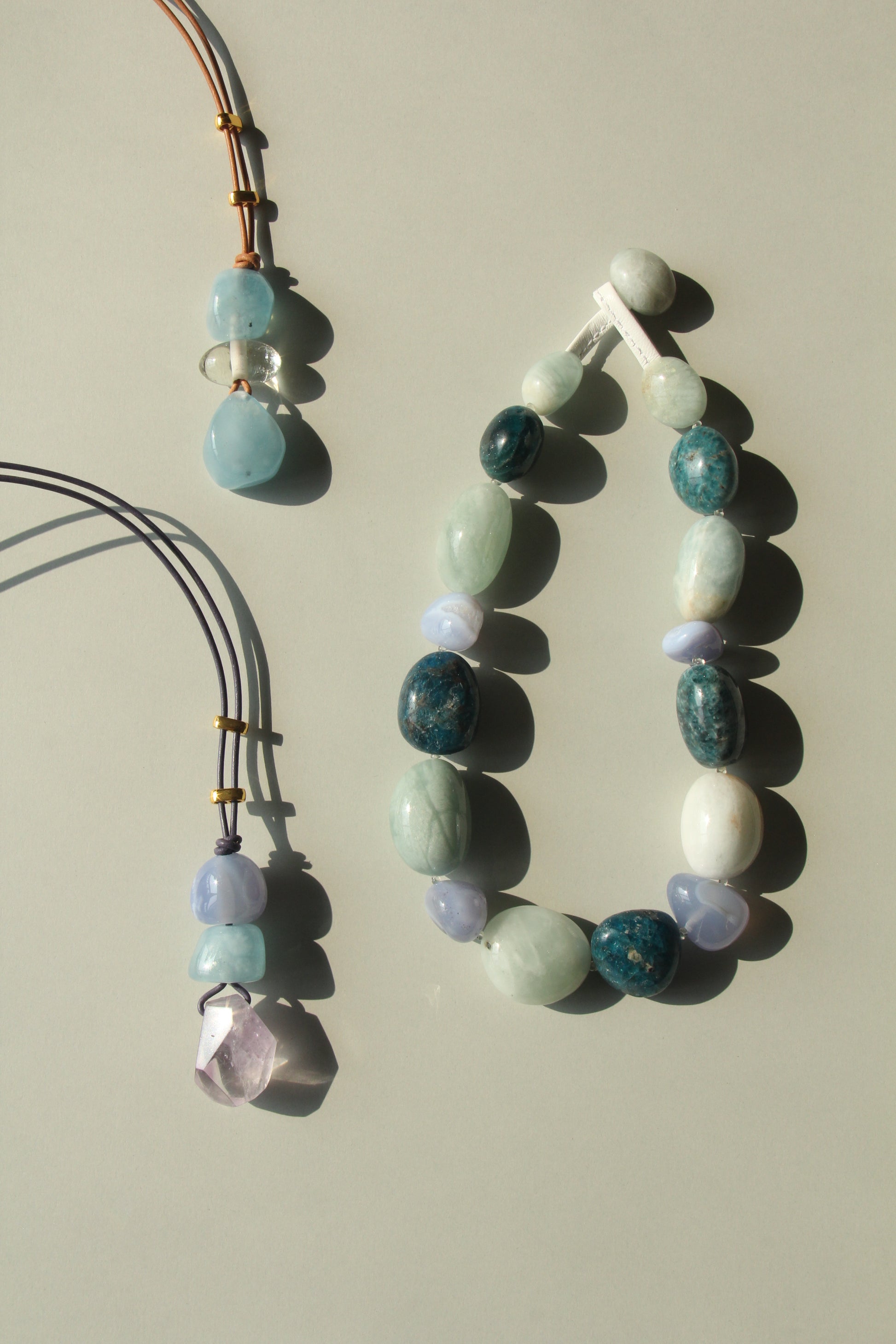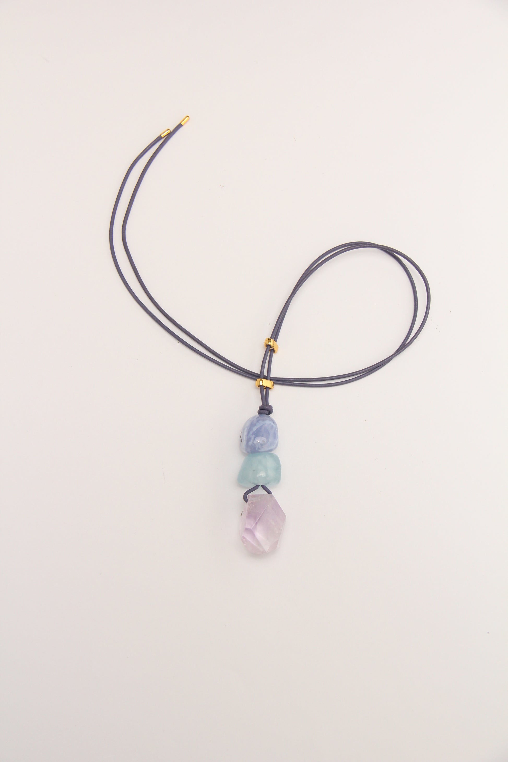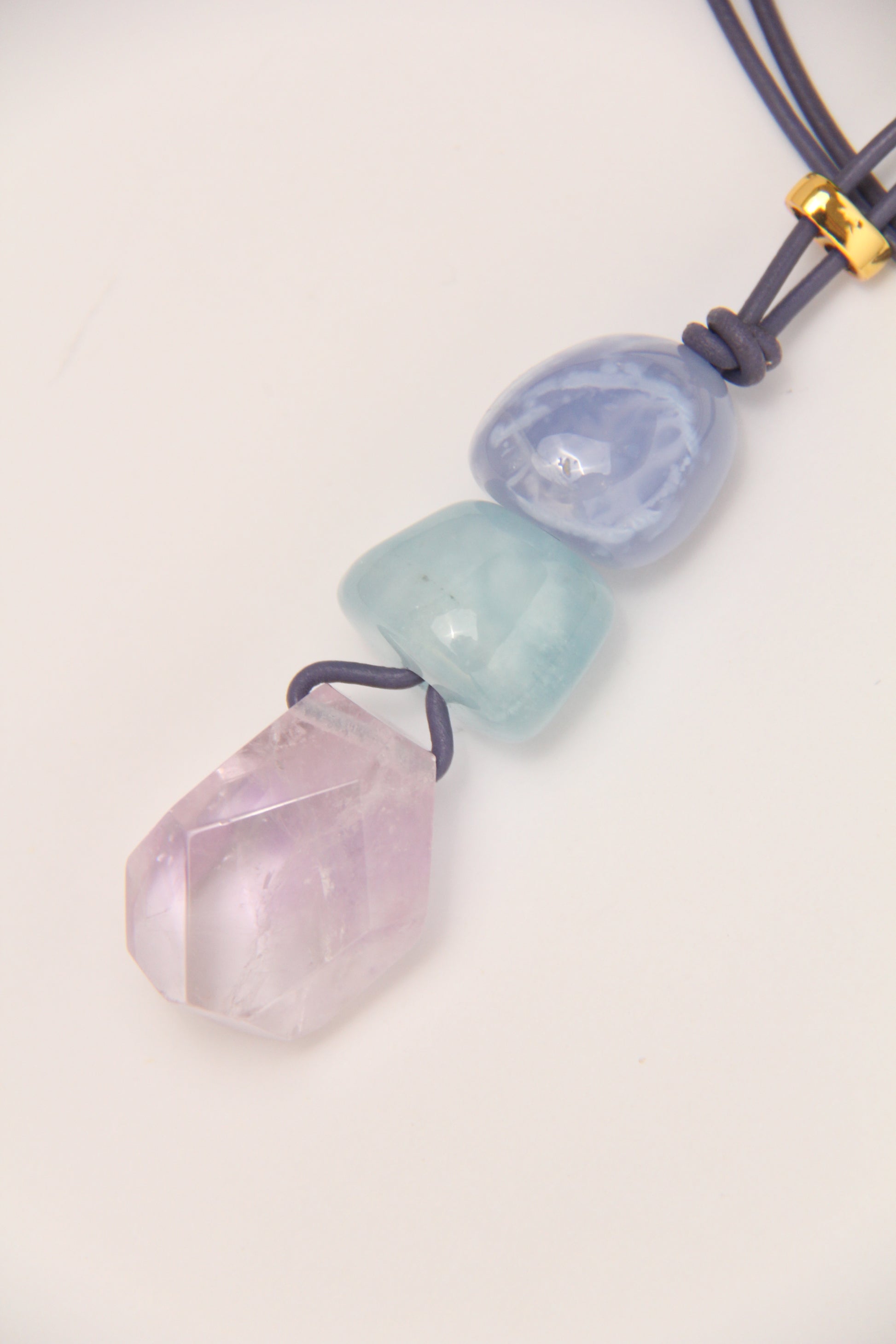 Pendant: blue lace agate, morganite, amethyst
