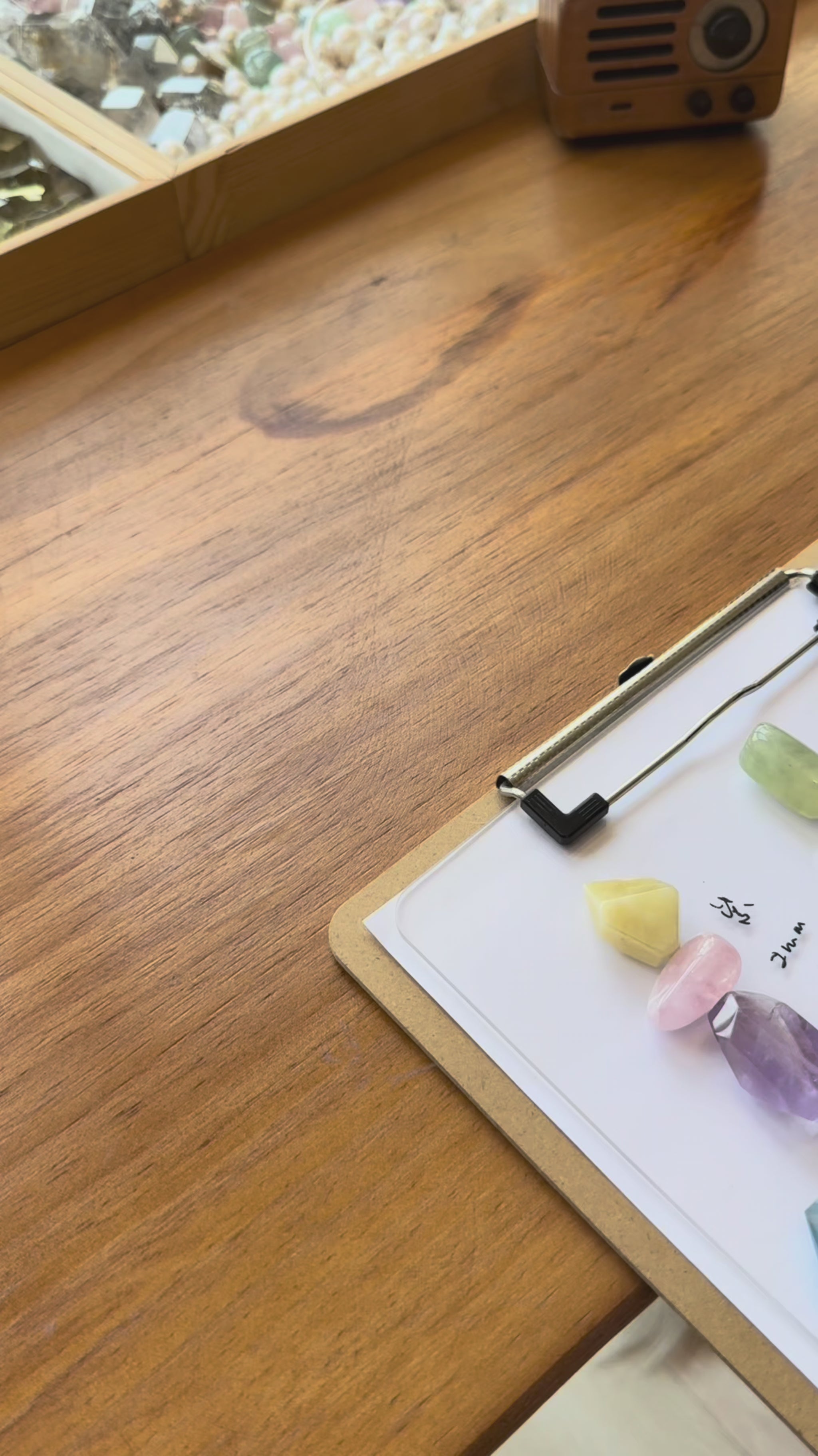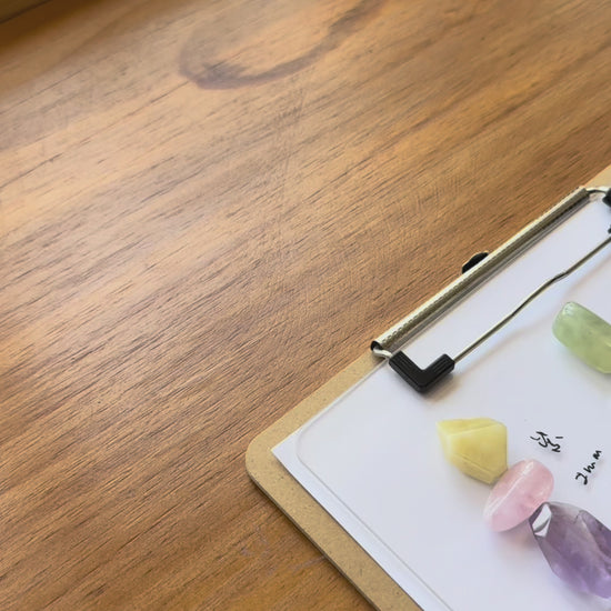 Pendant: morganite, amethyst, citrine, leather