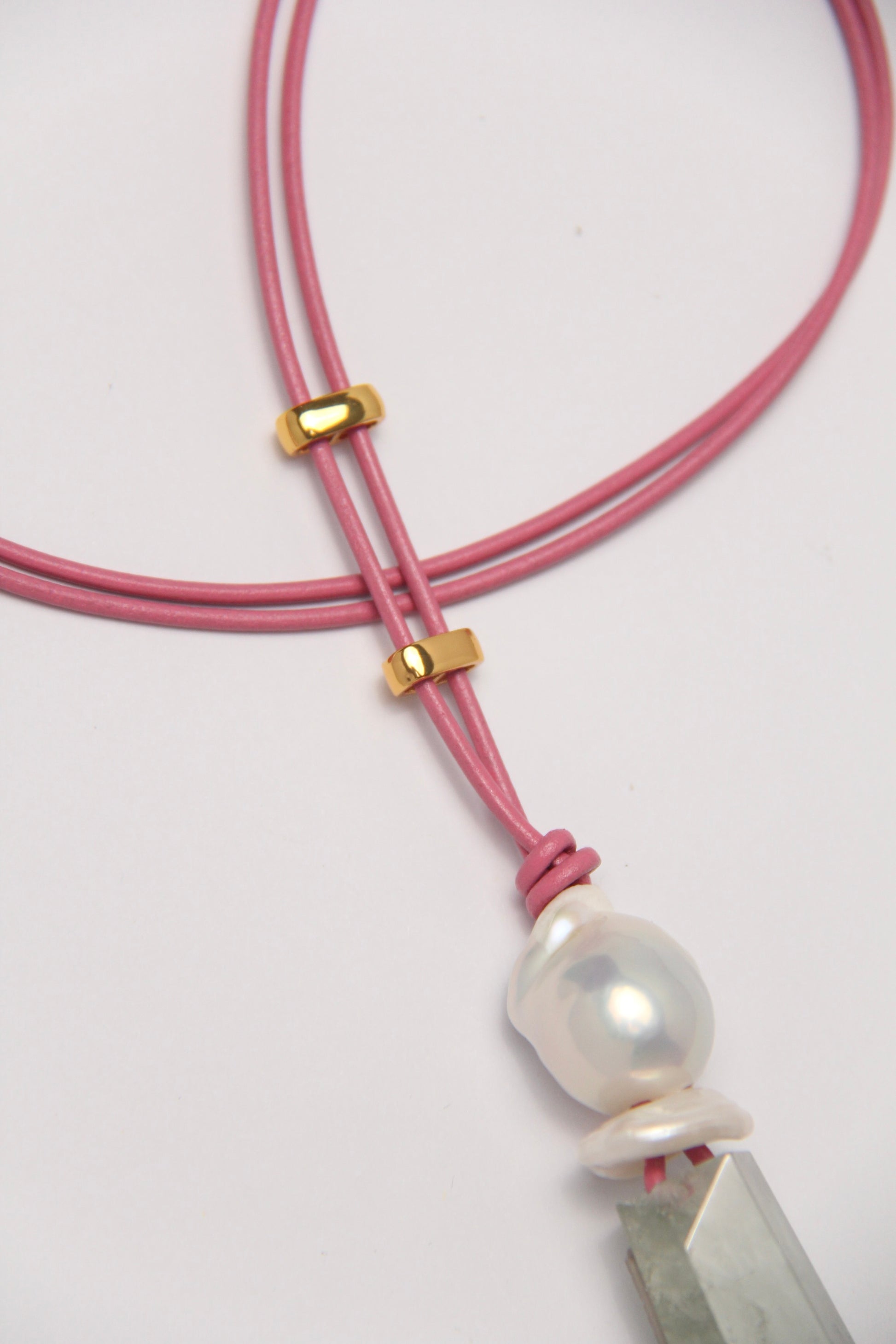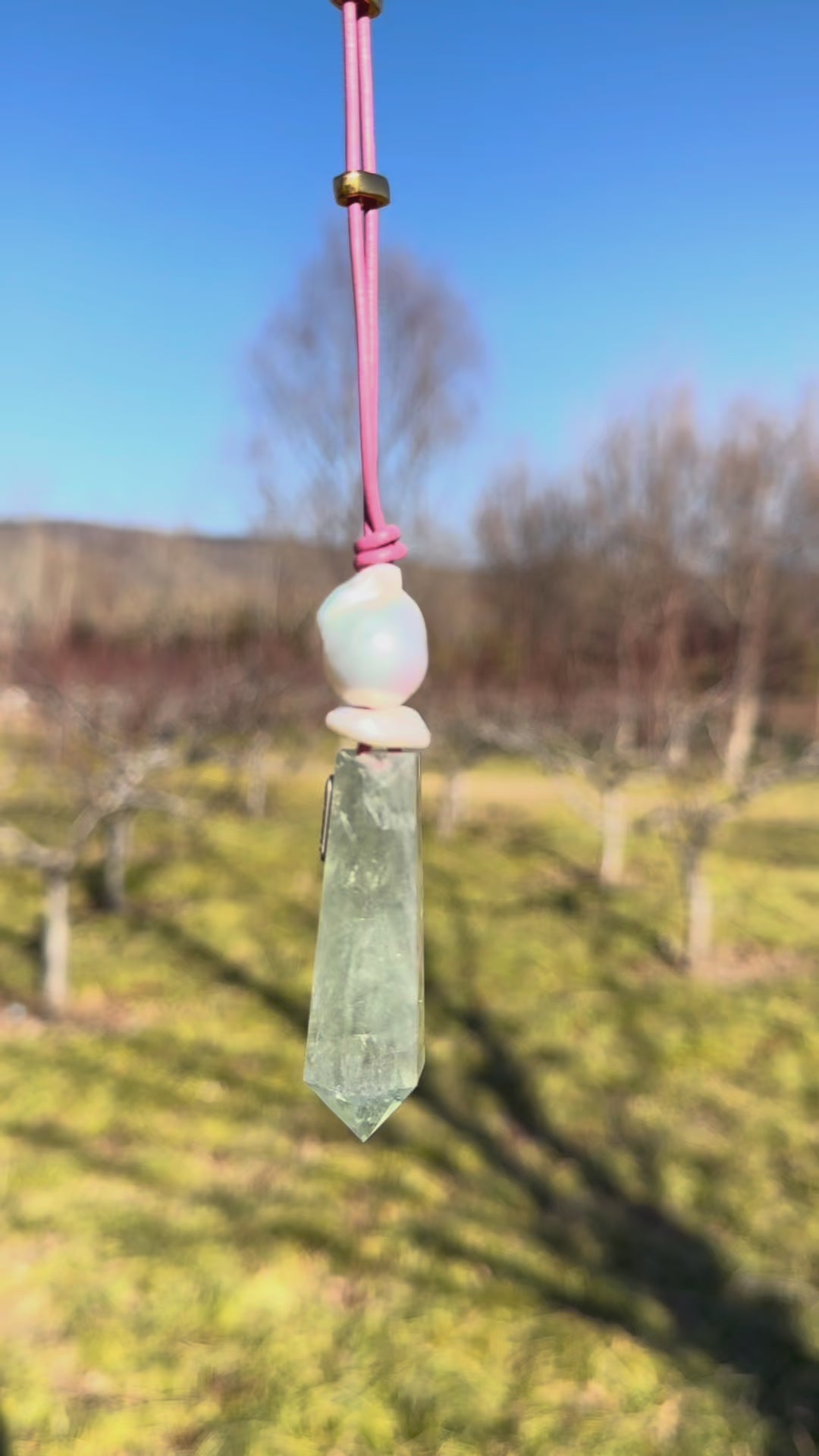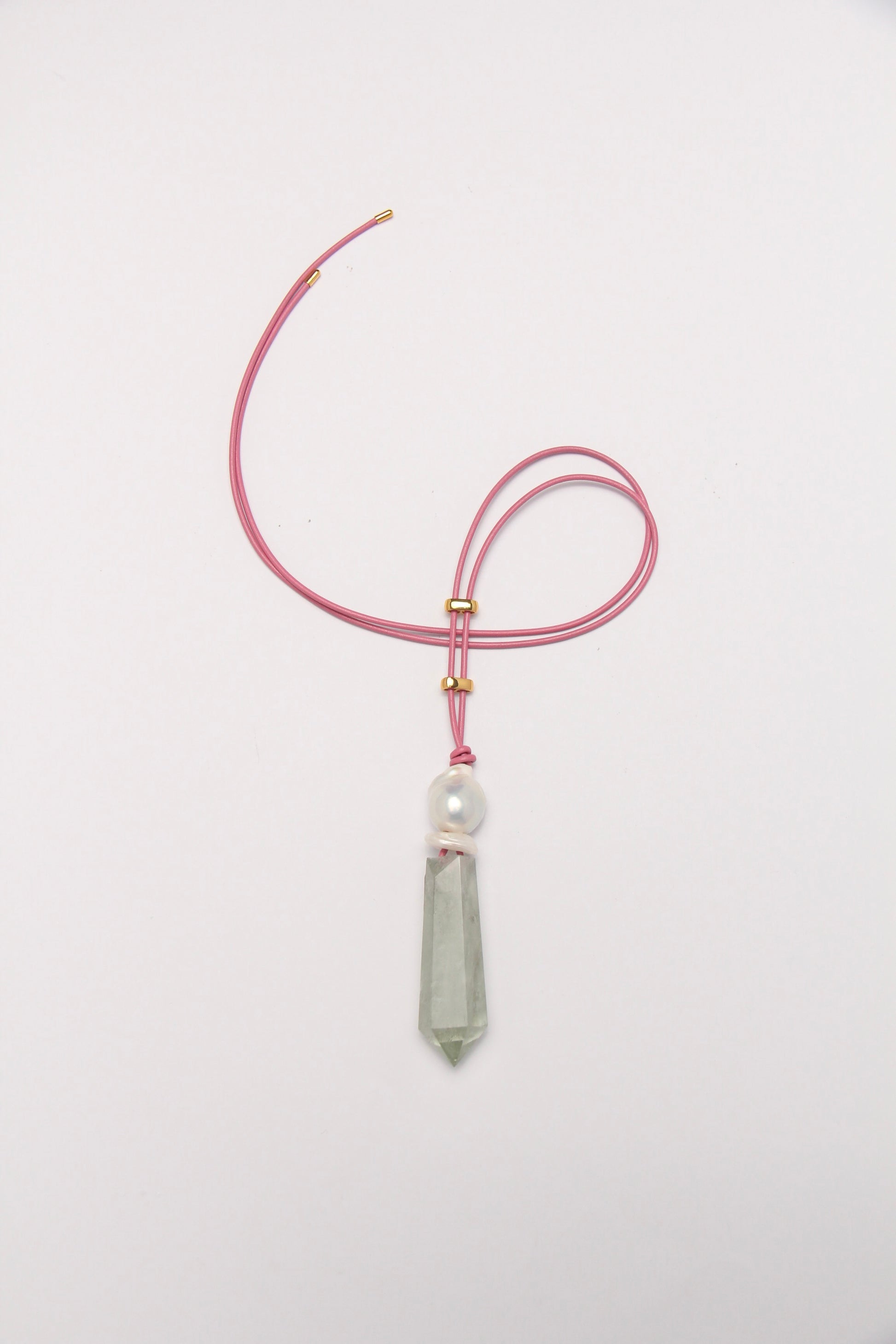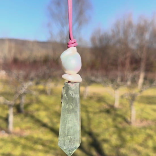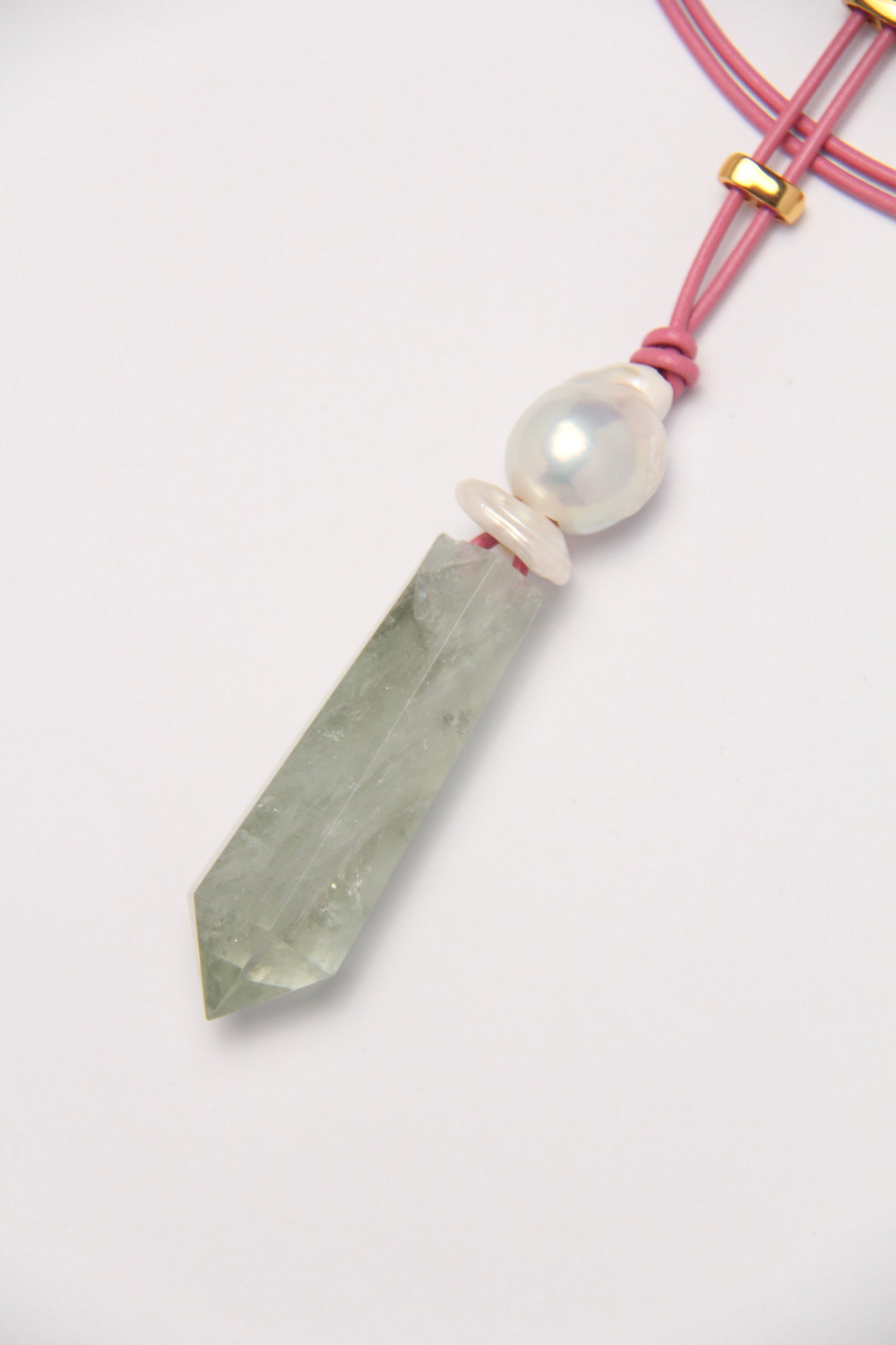 Pendant: prasem quartz, pearls