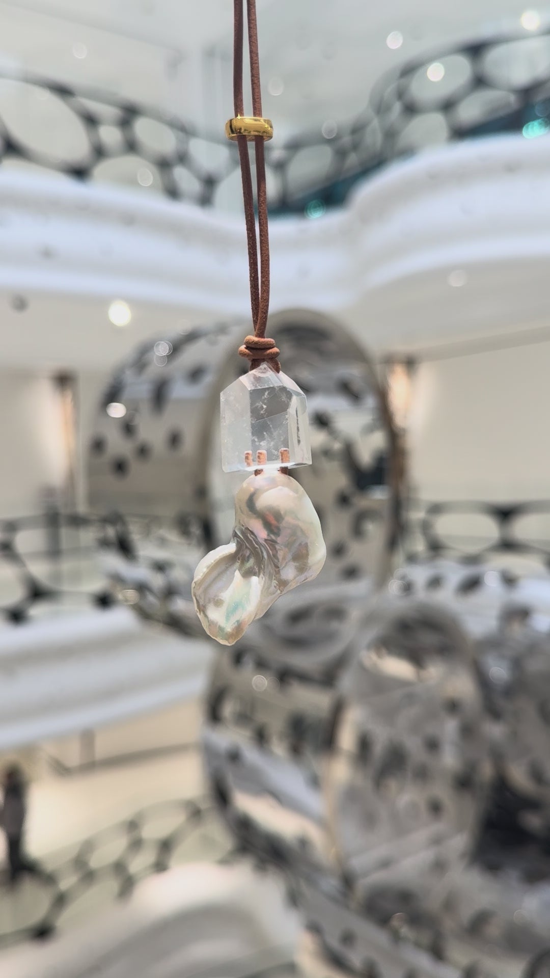 Pendant: quartz, pearls