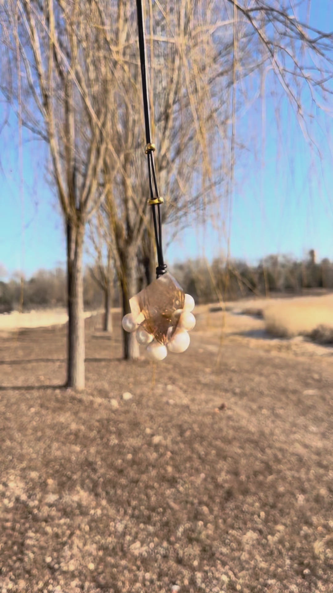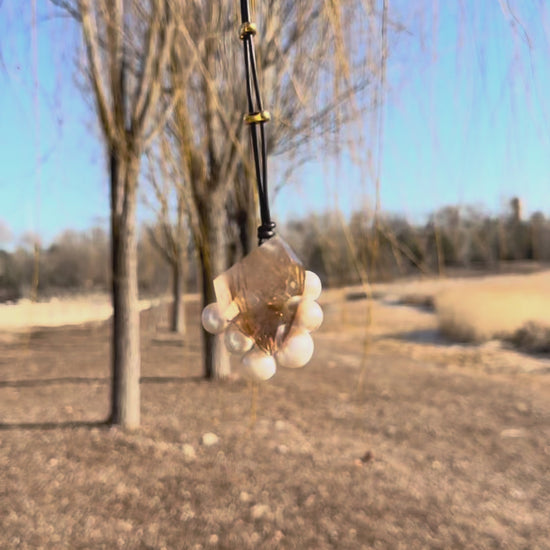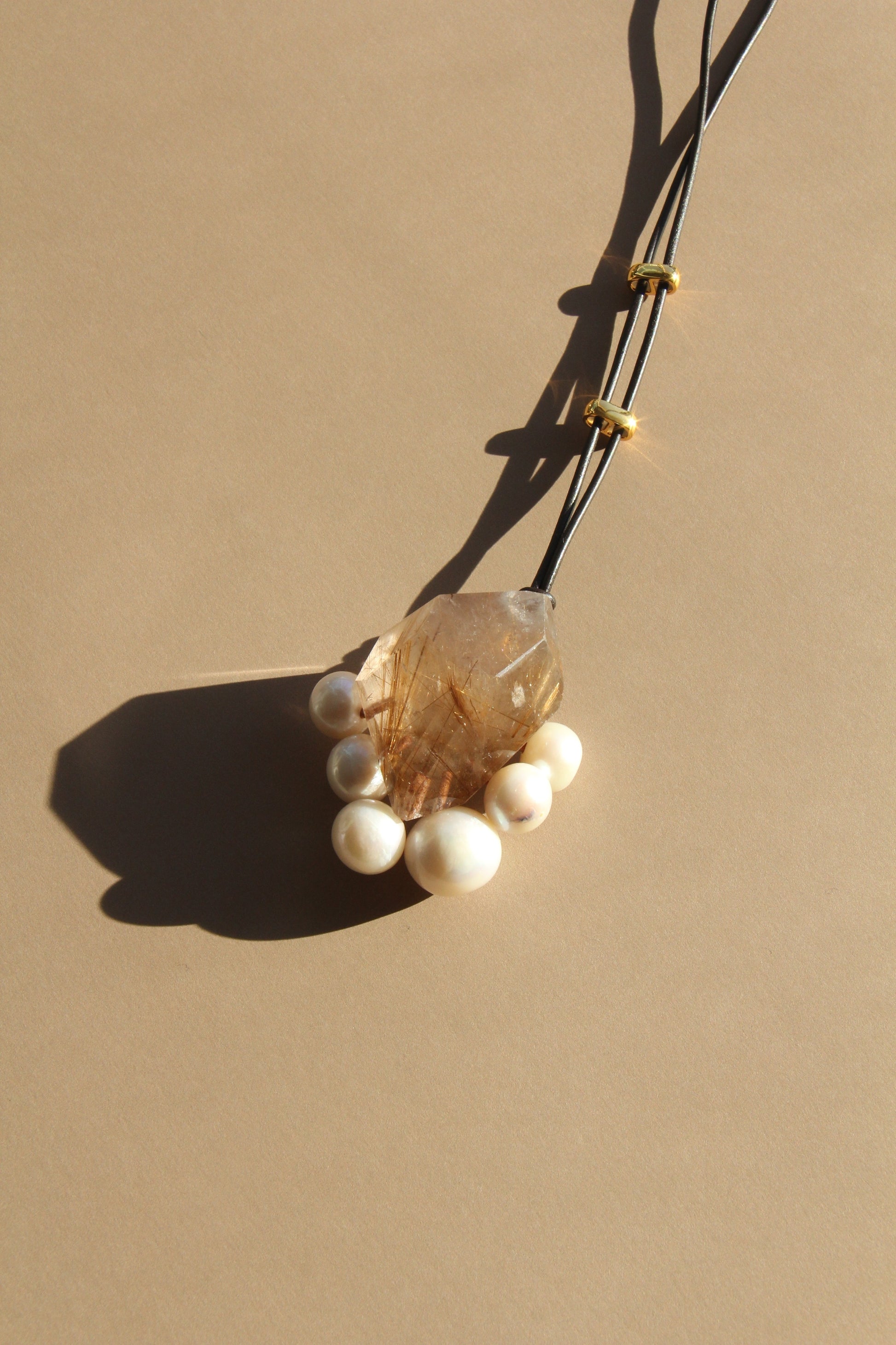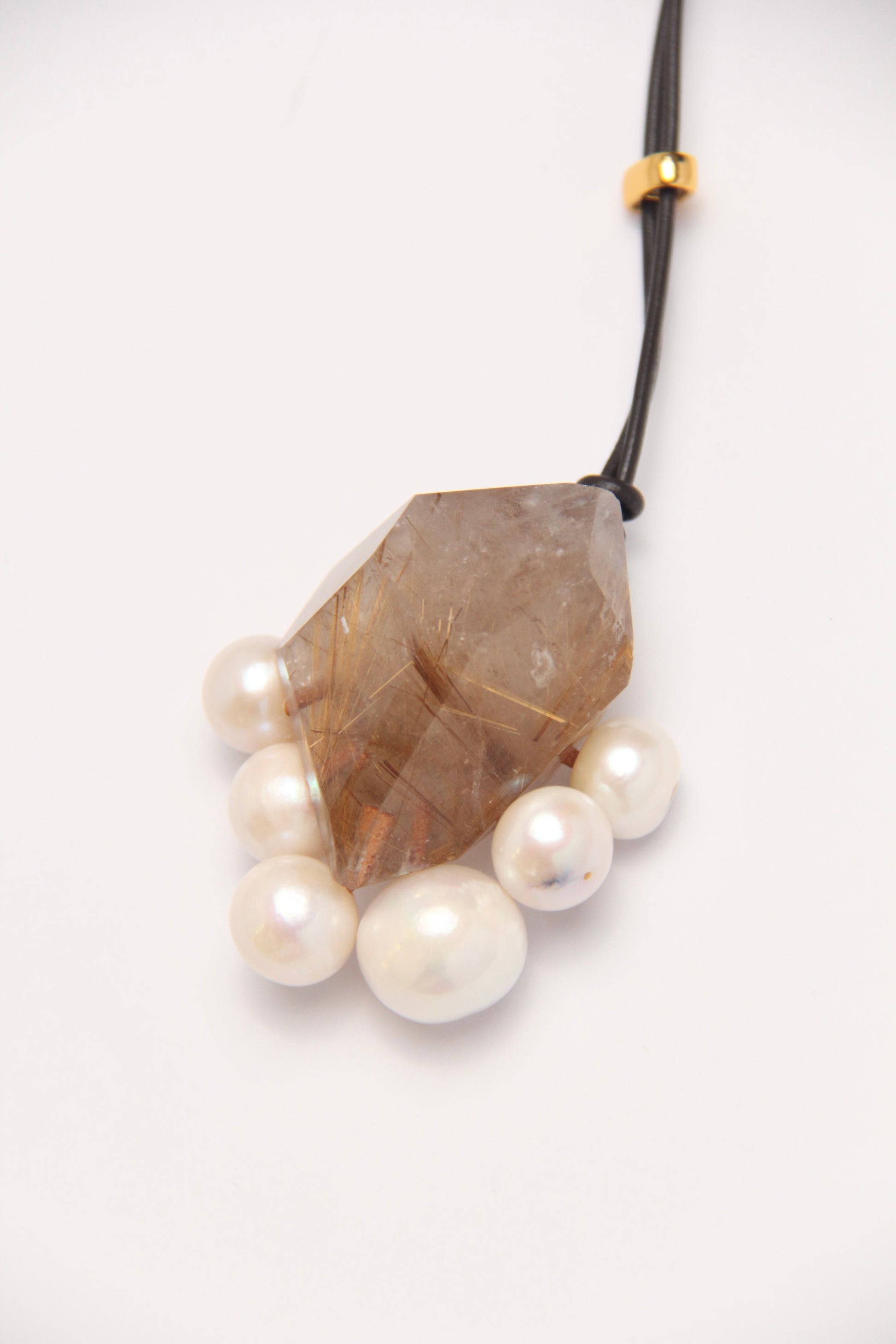 Pendant: rutilated quartz, pearls